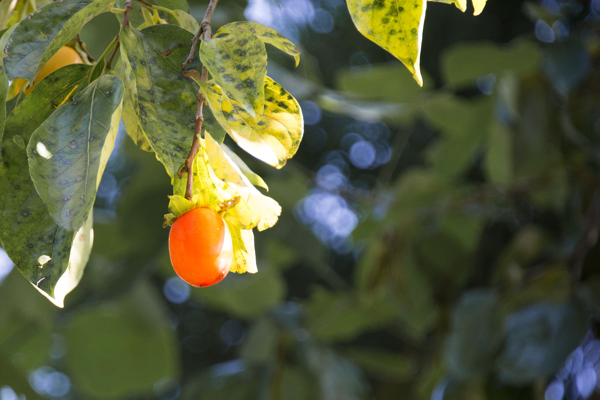 2015年10月撮影の風景写真2です。青空を背景にした柿の木が綺麗でした。