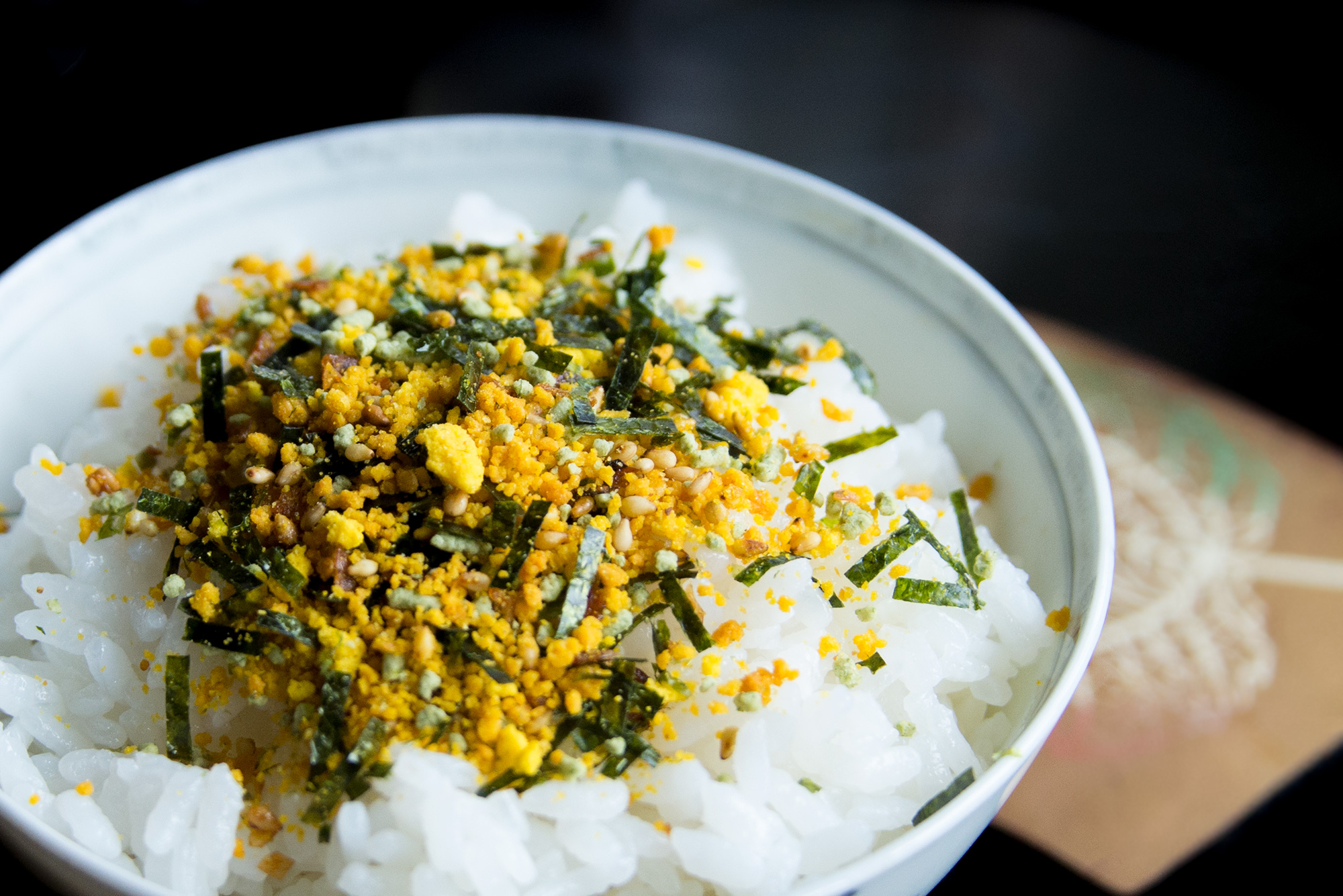2016年9月撮影のフリー写真素材113です。ふりかけご飯を撮影して、編集で湯気を追加しました。