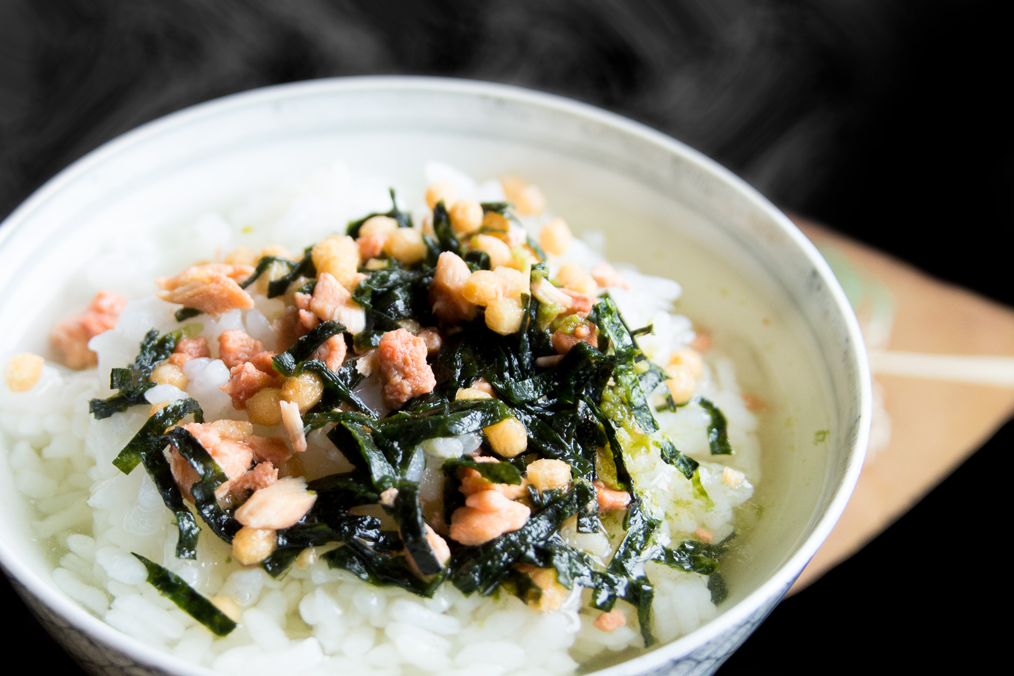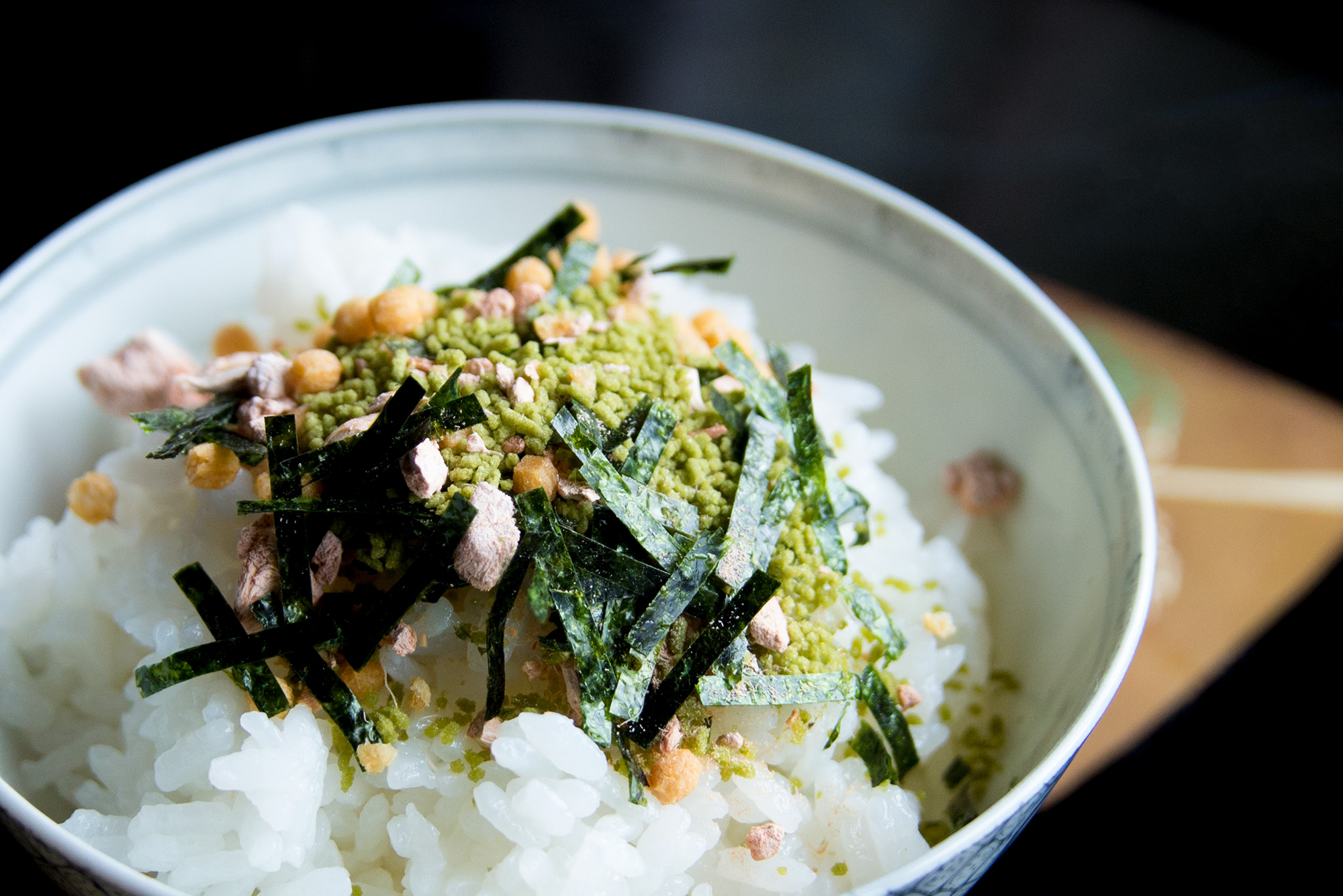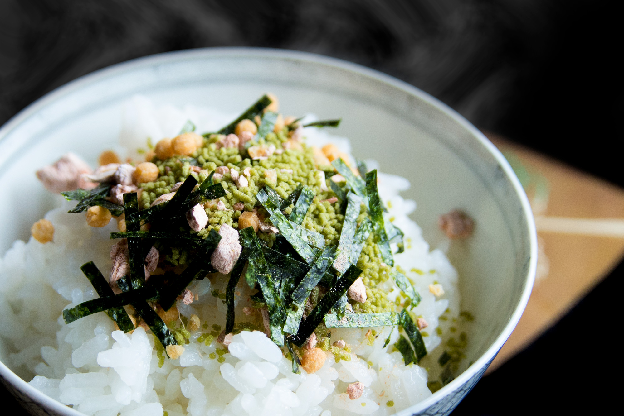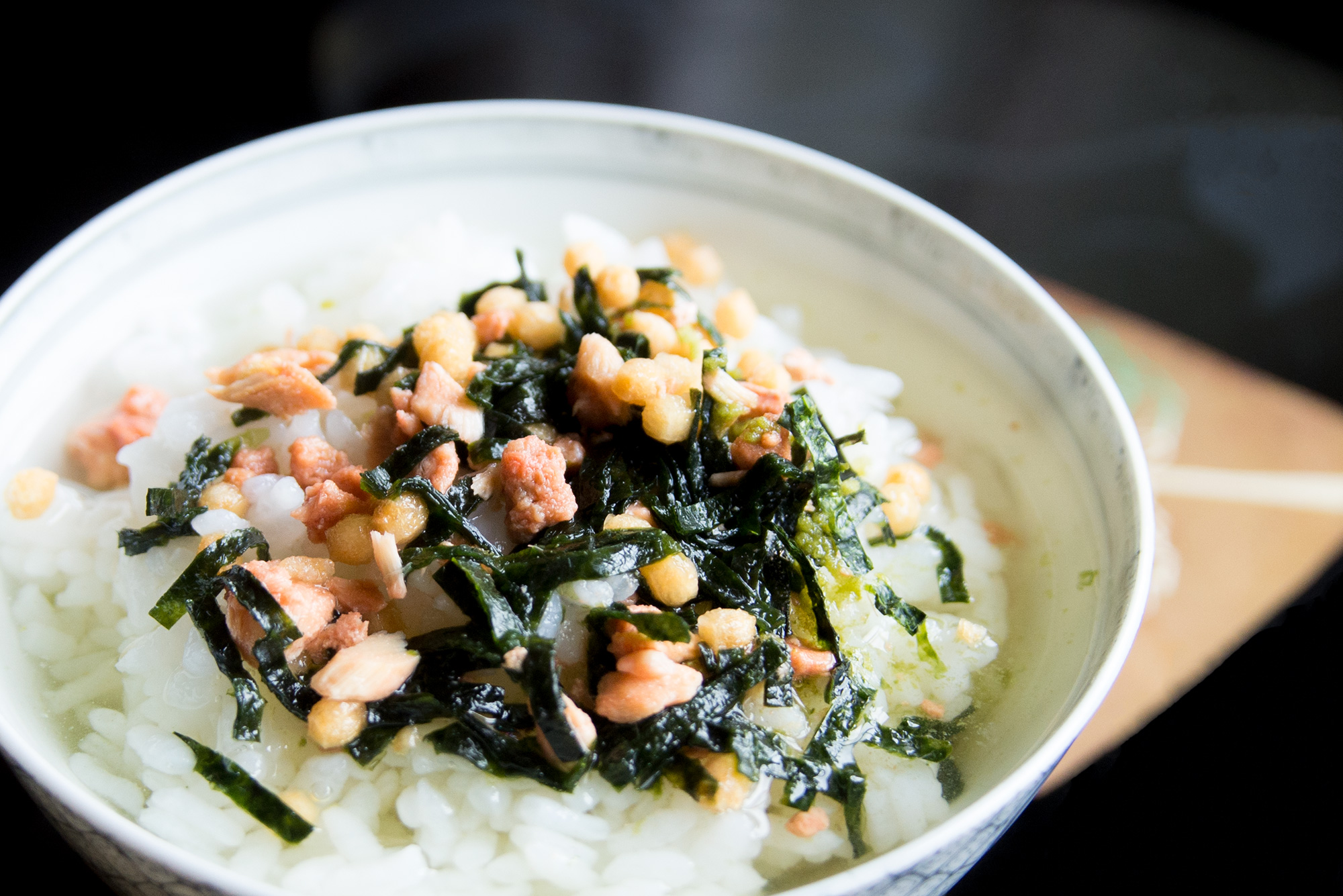 2016年9月撮影のフリー写真素材117です。ご飯にお茶漬けの素をかけて撮影しました。
