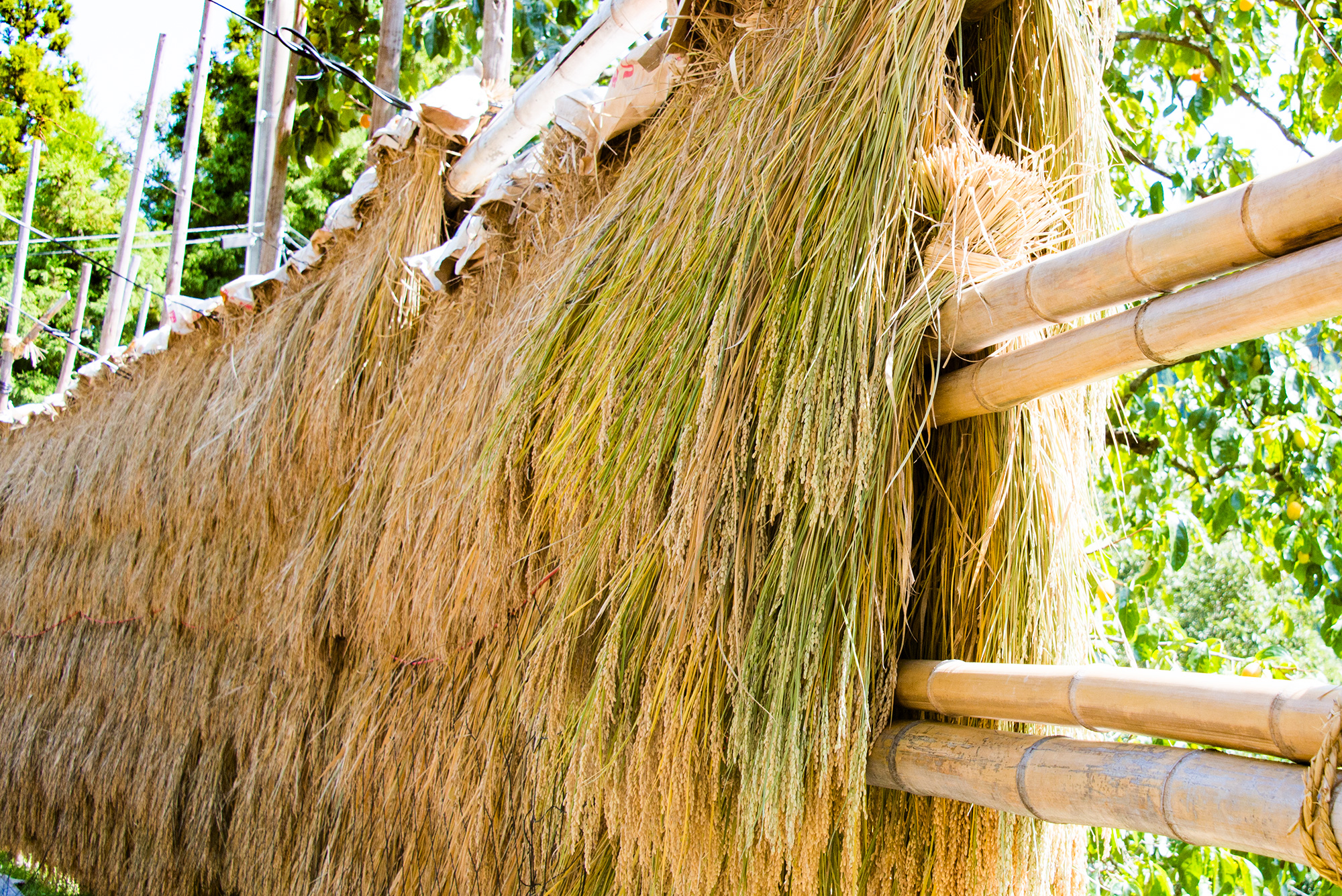 2016年9月撮影のフリー写真素材162です。干した稲を撮影しました。