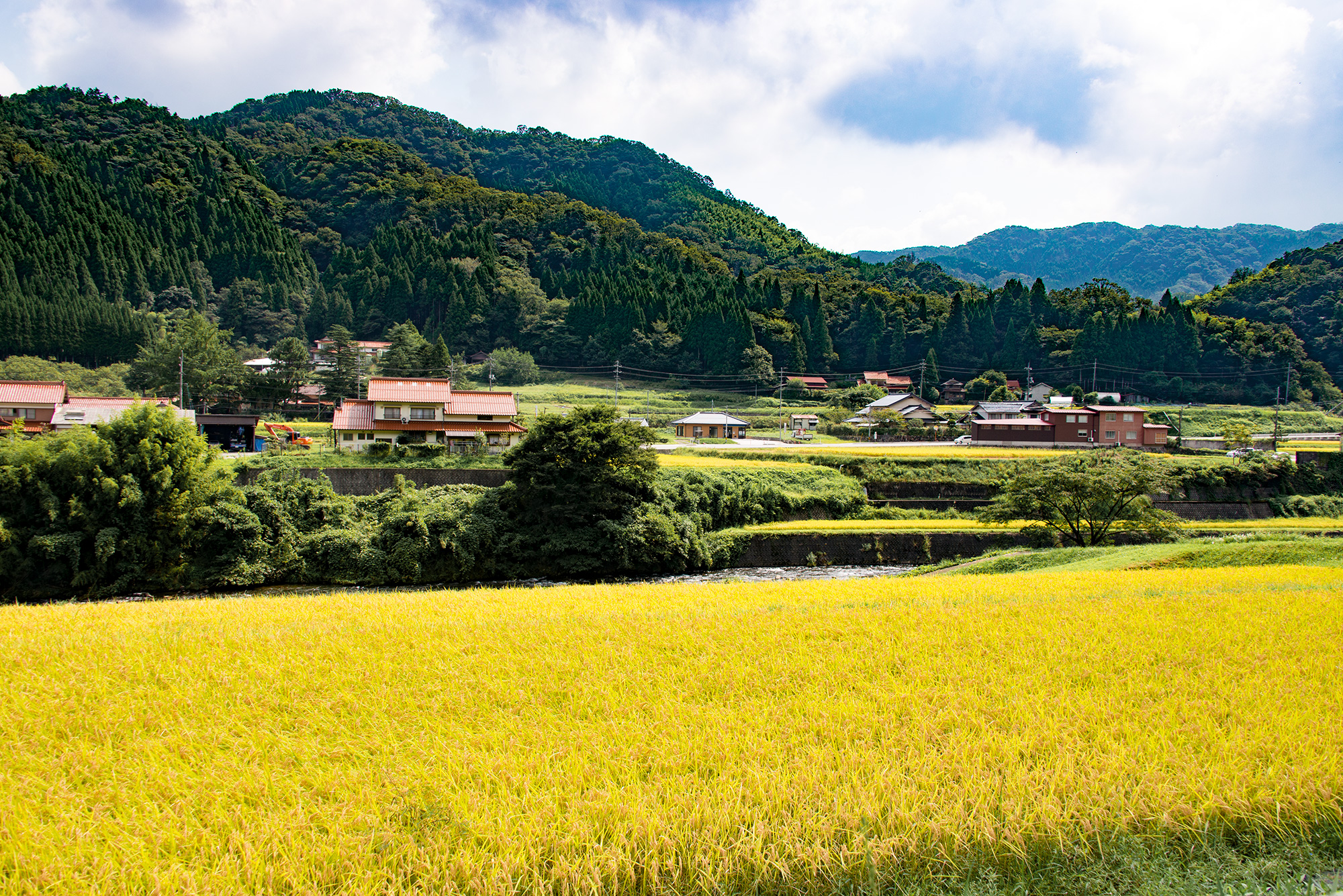 2016年9月撮影のフリー写真素材29です。田んぼを撮影して、稲穂以外を白黒写真に編集しました。