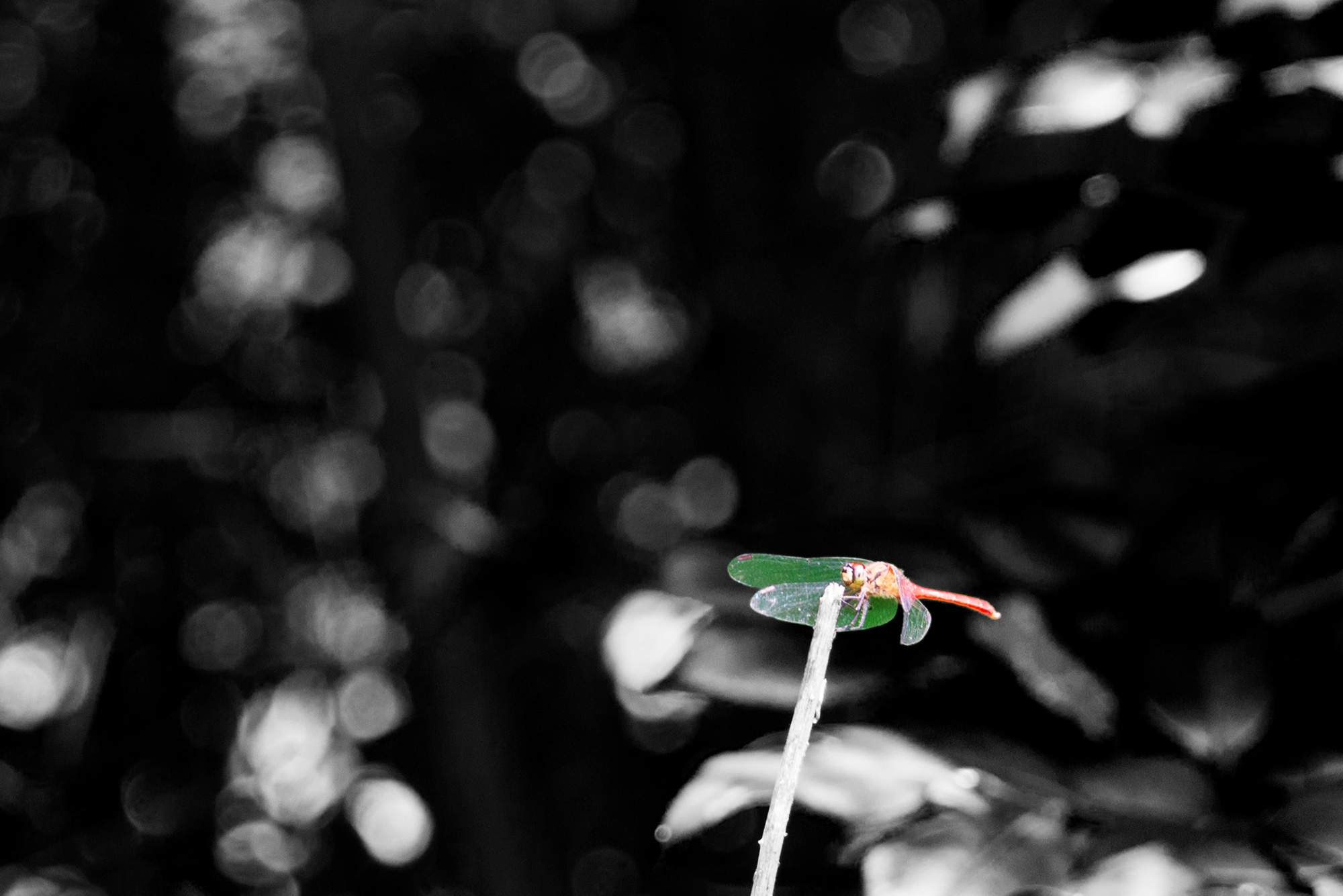 2016年9月撮影のフリー写真素材40です。トンボを撮影して、トンボ以外を白黒写真に編集しました。