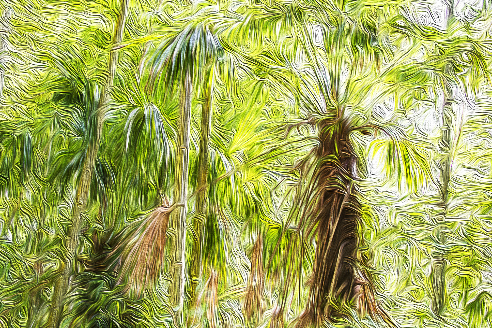 2016年9月撮影のフリー写真素材85です。竹藪の木を撮影して、絵画風に加工しました。