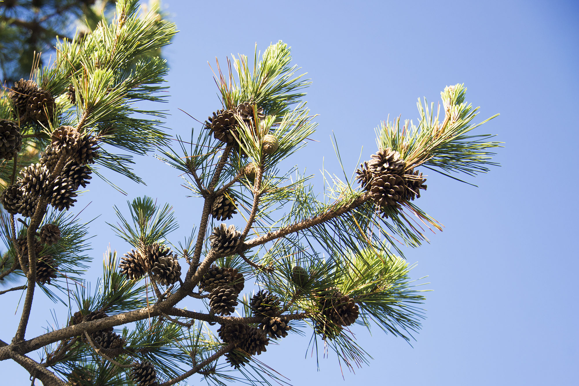 青空と松ぼっくりを撮影しました。2017年6月撮影のフリー写真素材121です。