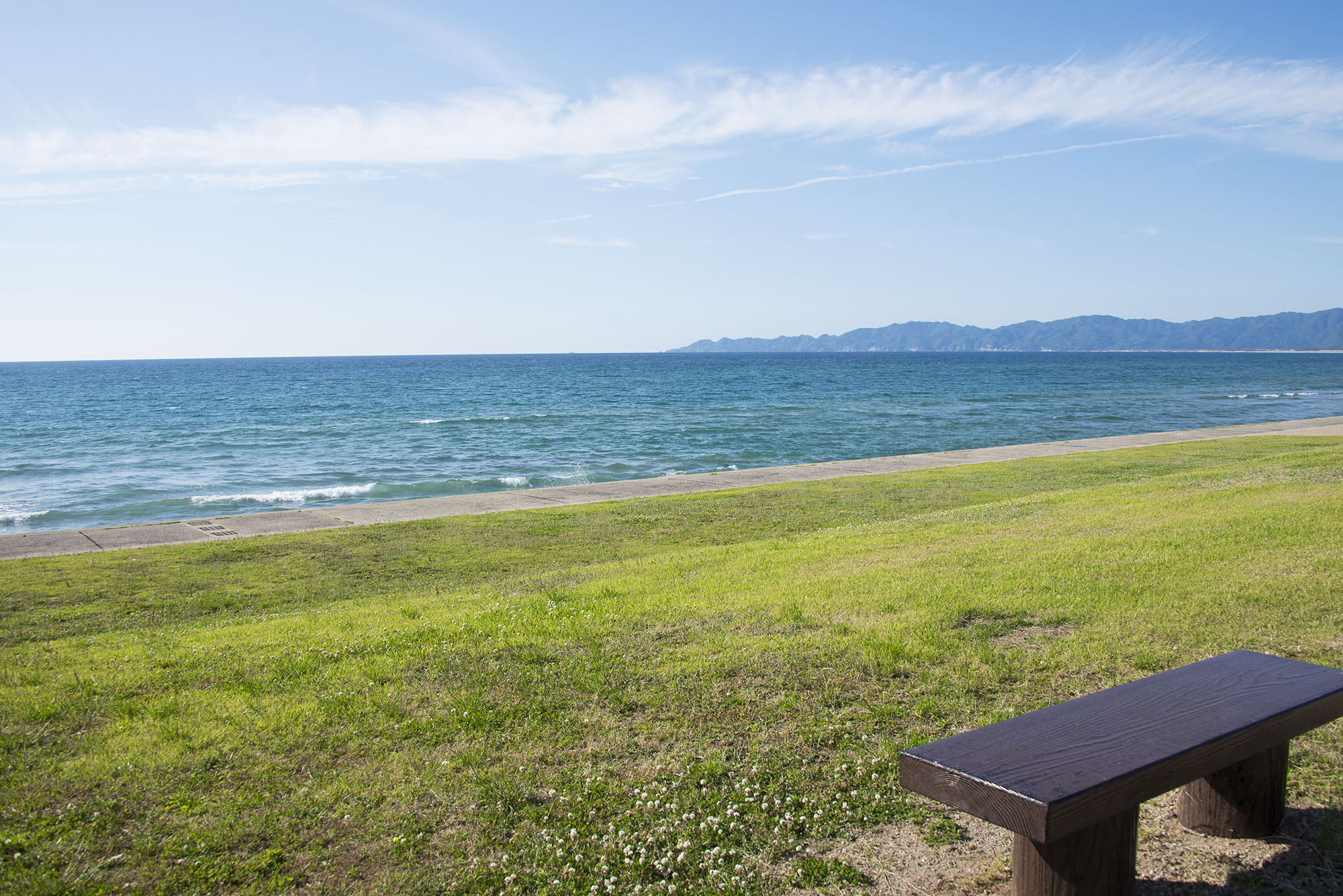 海沿いの長椅子を撮影しました。2017年6月撮影のフリー写真素材122です。