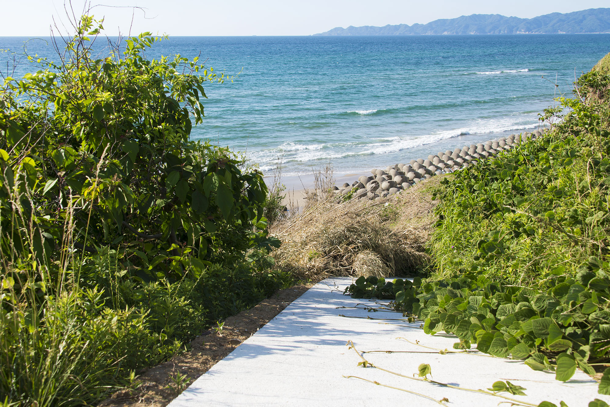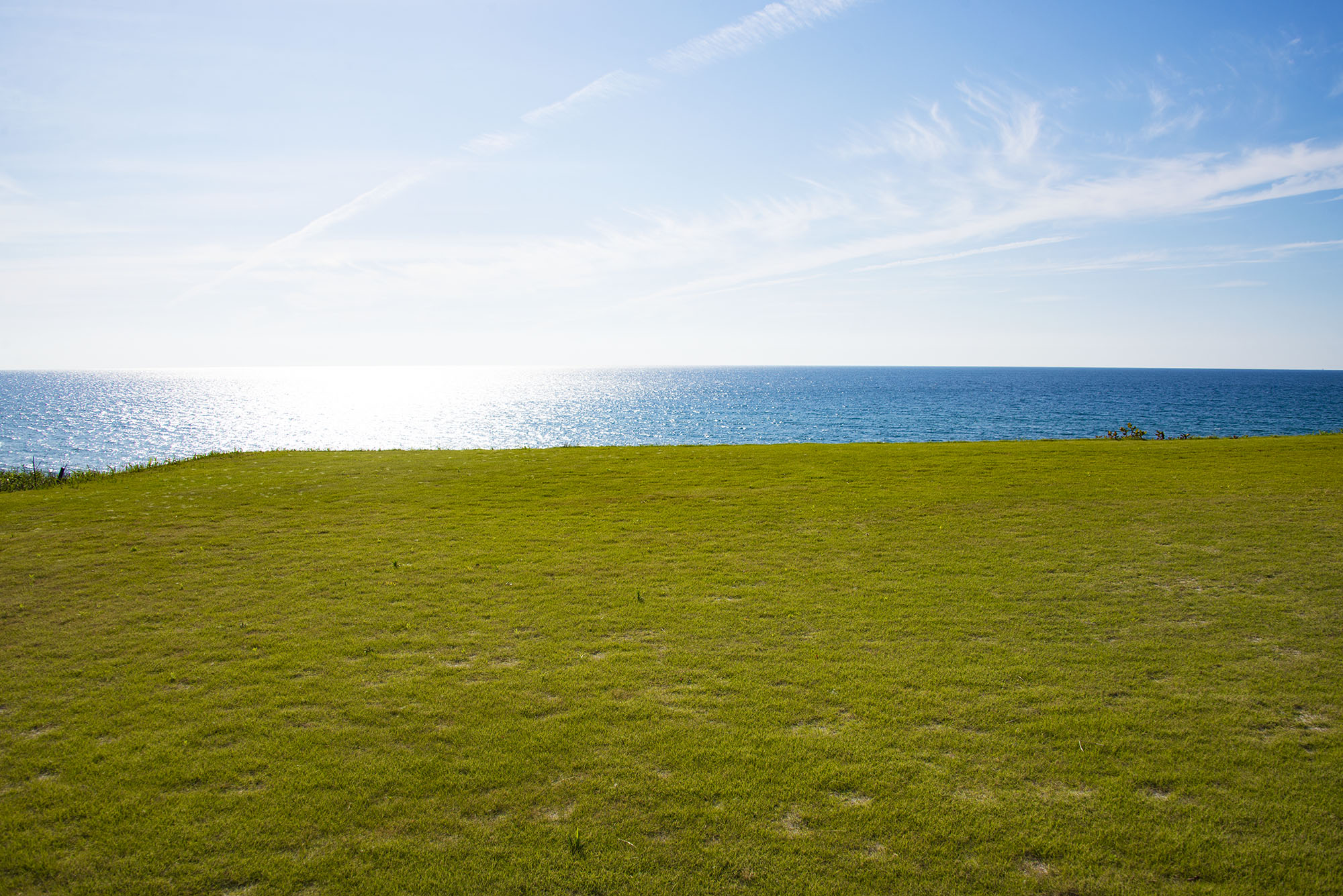 青い海と芝生を撮影しました。2017年6月撮影のフリー写真素材131です。