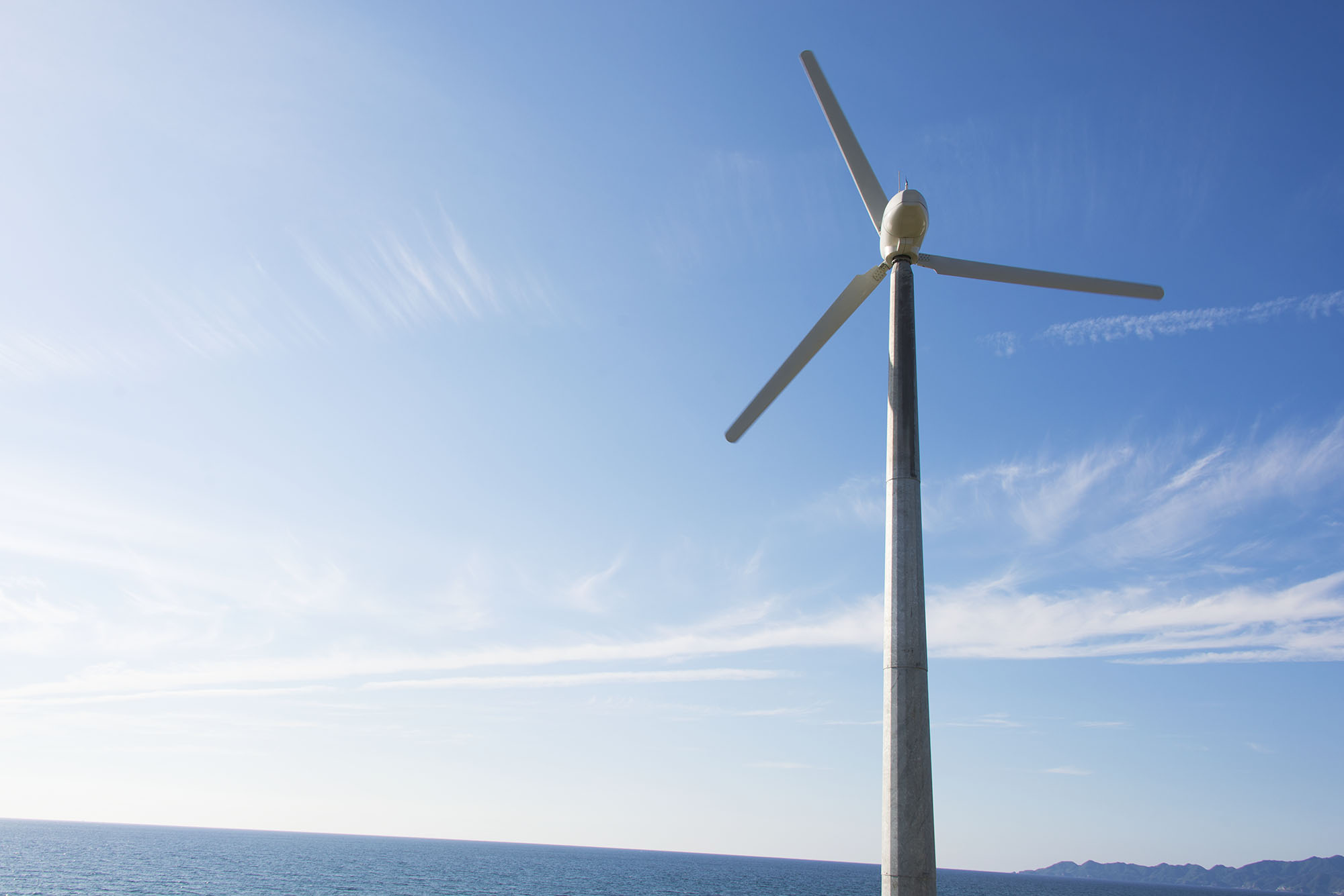 青空と風車を撮影しました。2017年6月撮影のフリー写真素材136です。