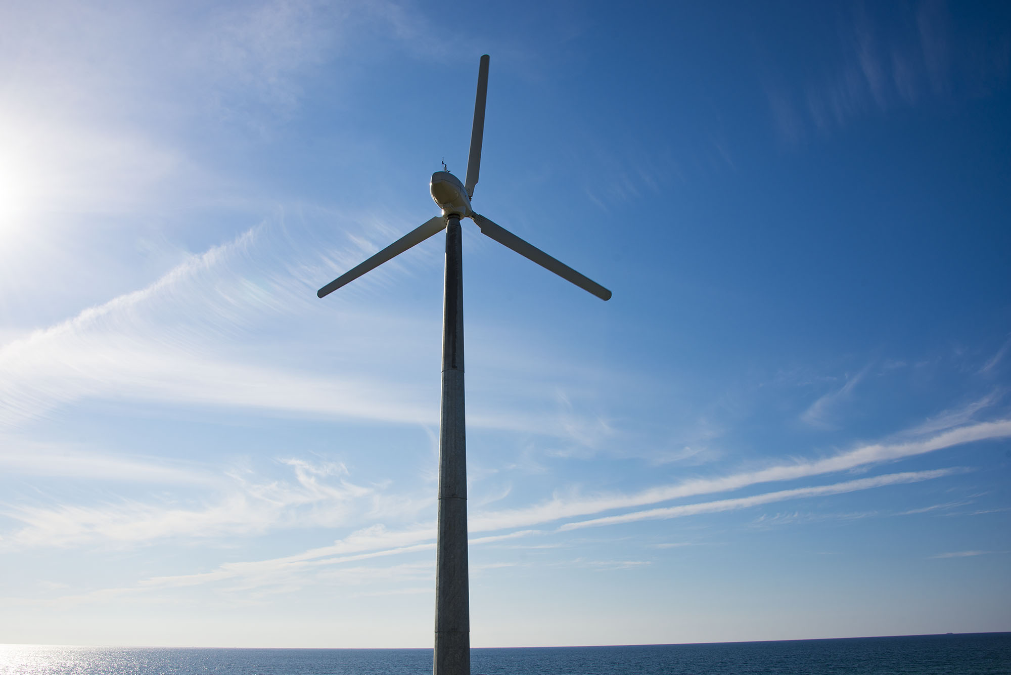 太陽と風車を撮影しました。2017年6月撮影のフリー写真素材137です。