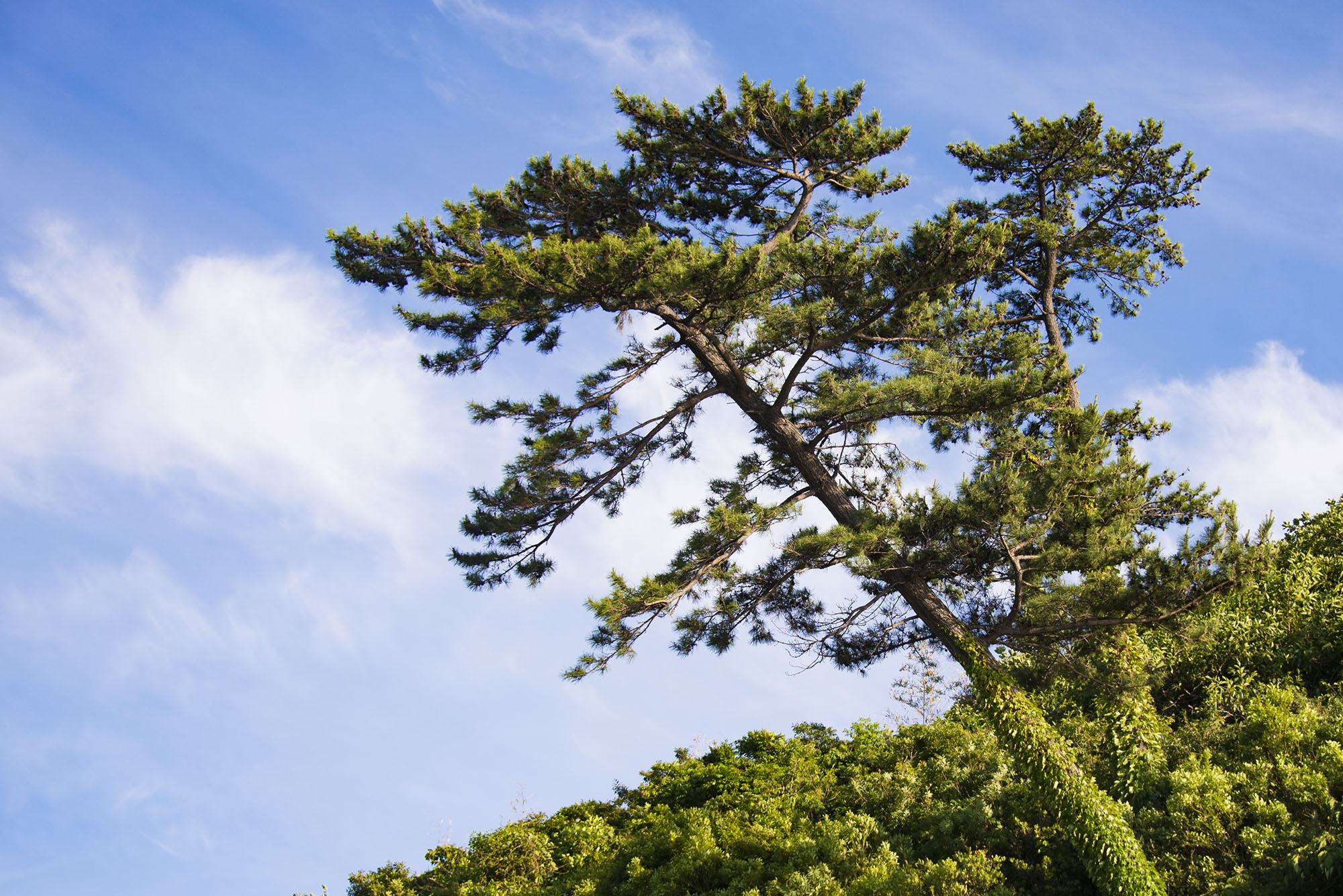斜めに生えた木を撮影しました。2017年6月撮影のフリー写真素材140です。