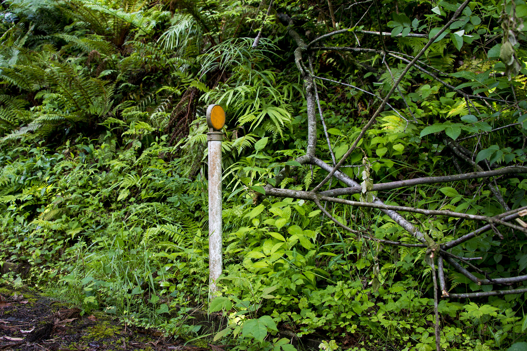 森の中の視線誘導標を撮影しました。2017年6月撮影のフリー写真素材21です。
