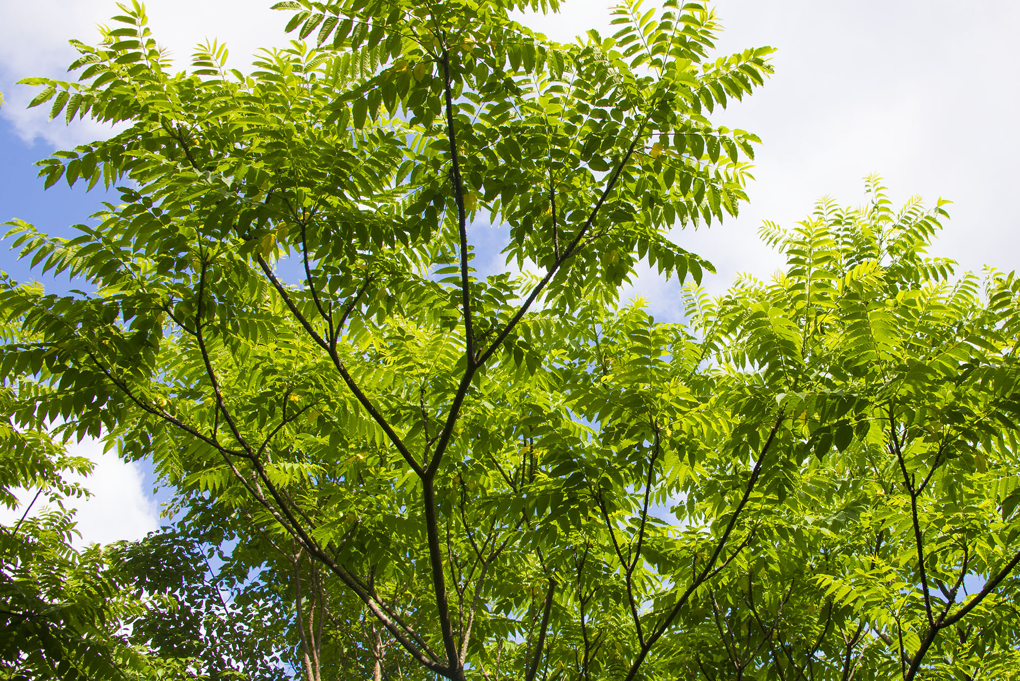 青空と緑の葉を撮影しました。2017年6月撮影のフリー写真素材28です。