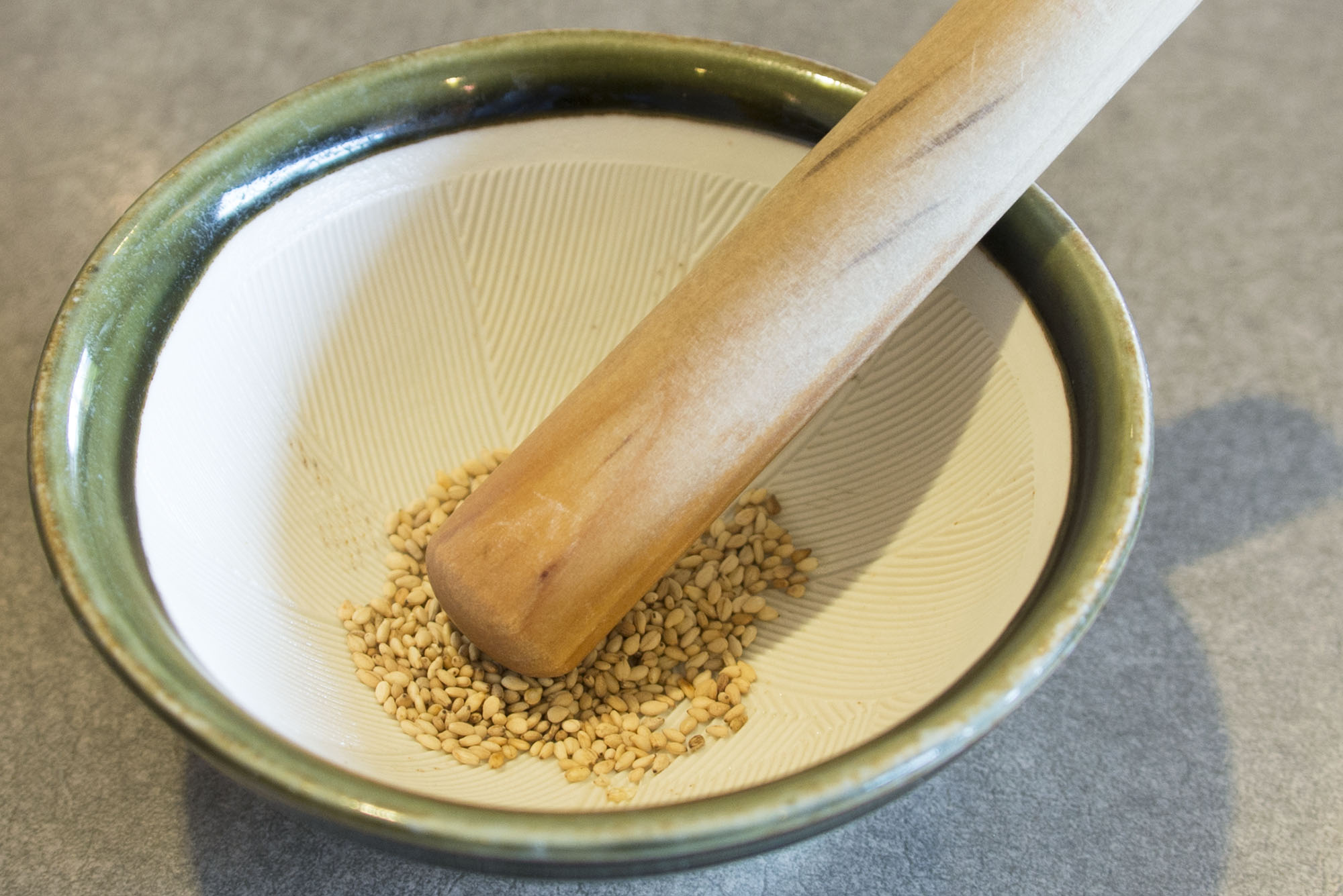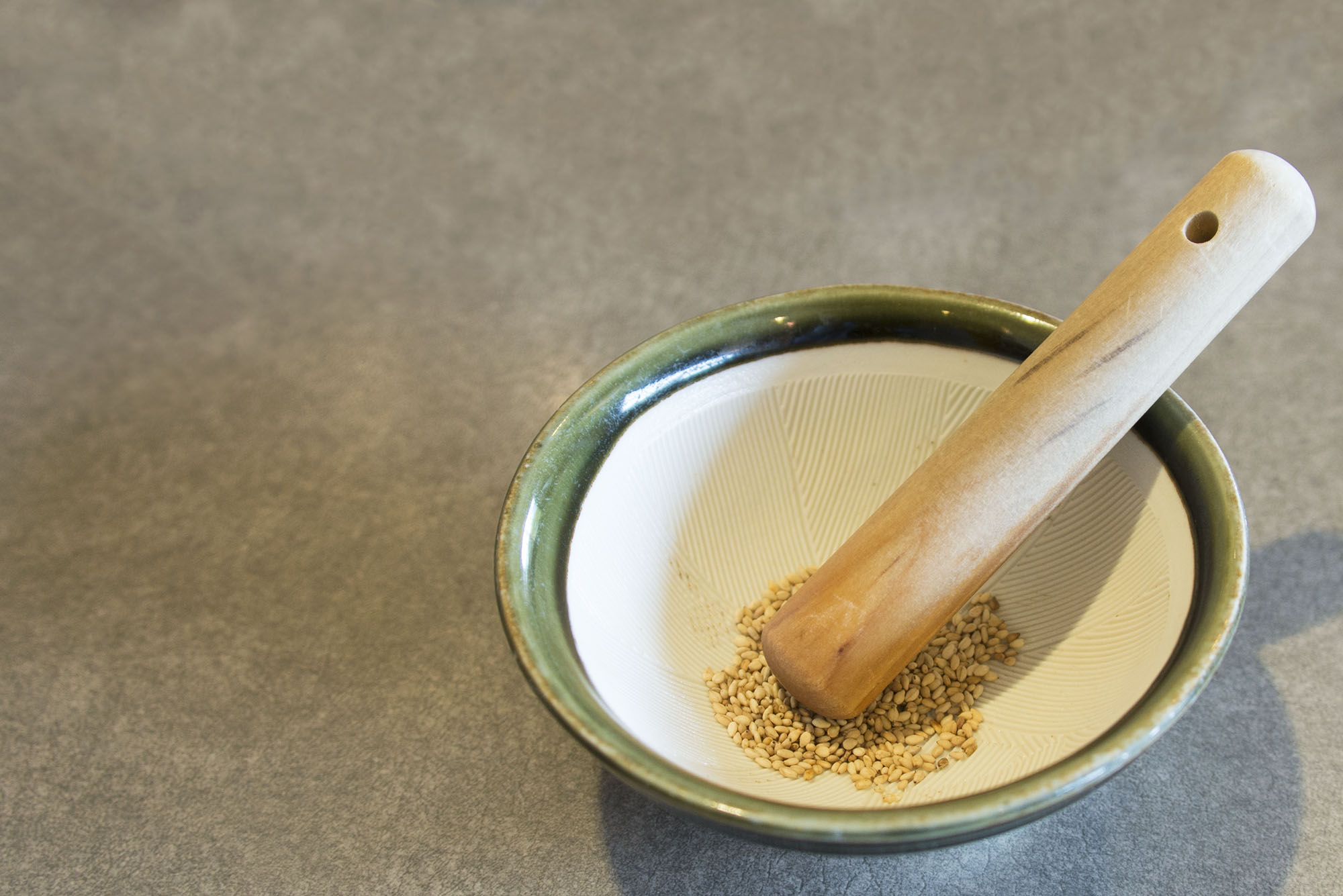 すり鉢とゴマを撮影しました。2017年6月撮影のフリー写真素材89です。