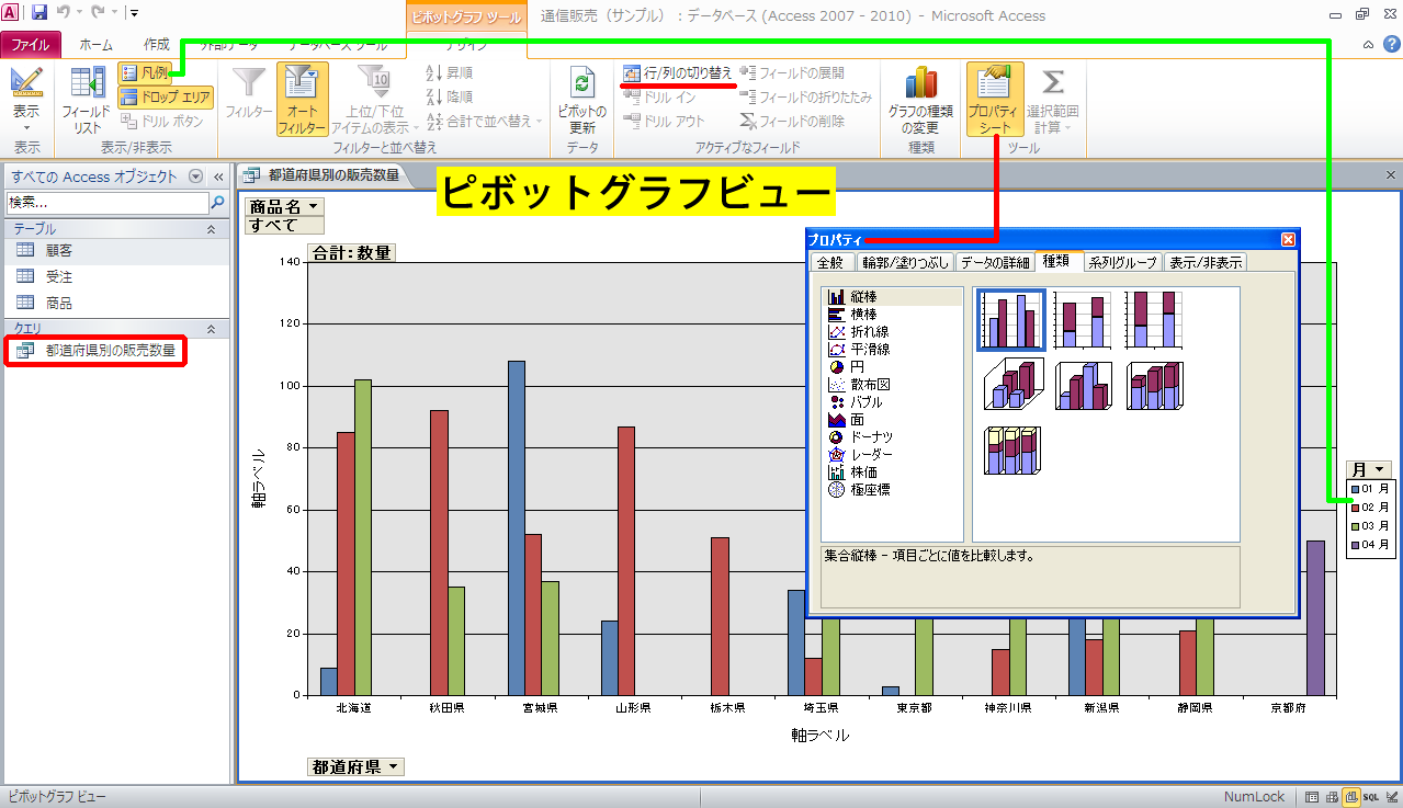 Access 2010 のピボットグラフビュー