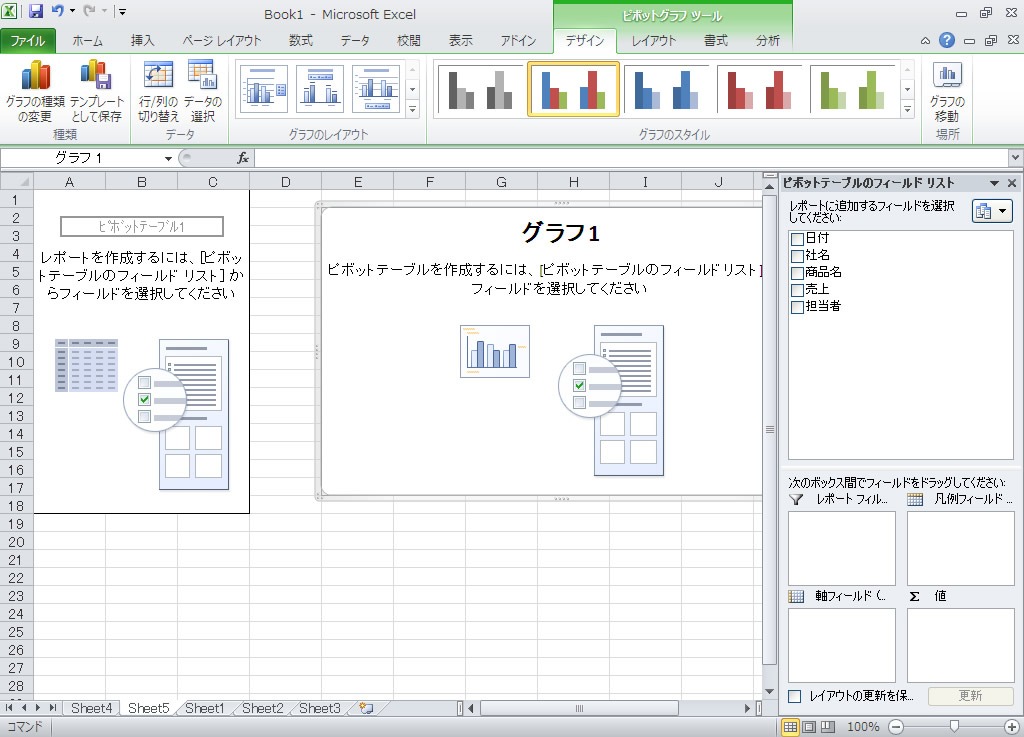 新しいワークシートに、ピボットテーブルとピボットグラフが作成されます。