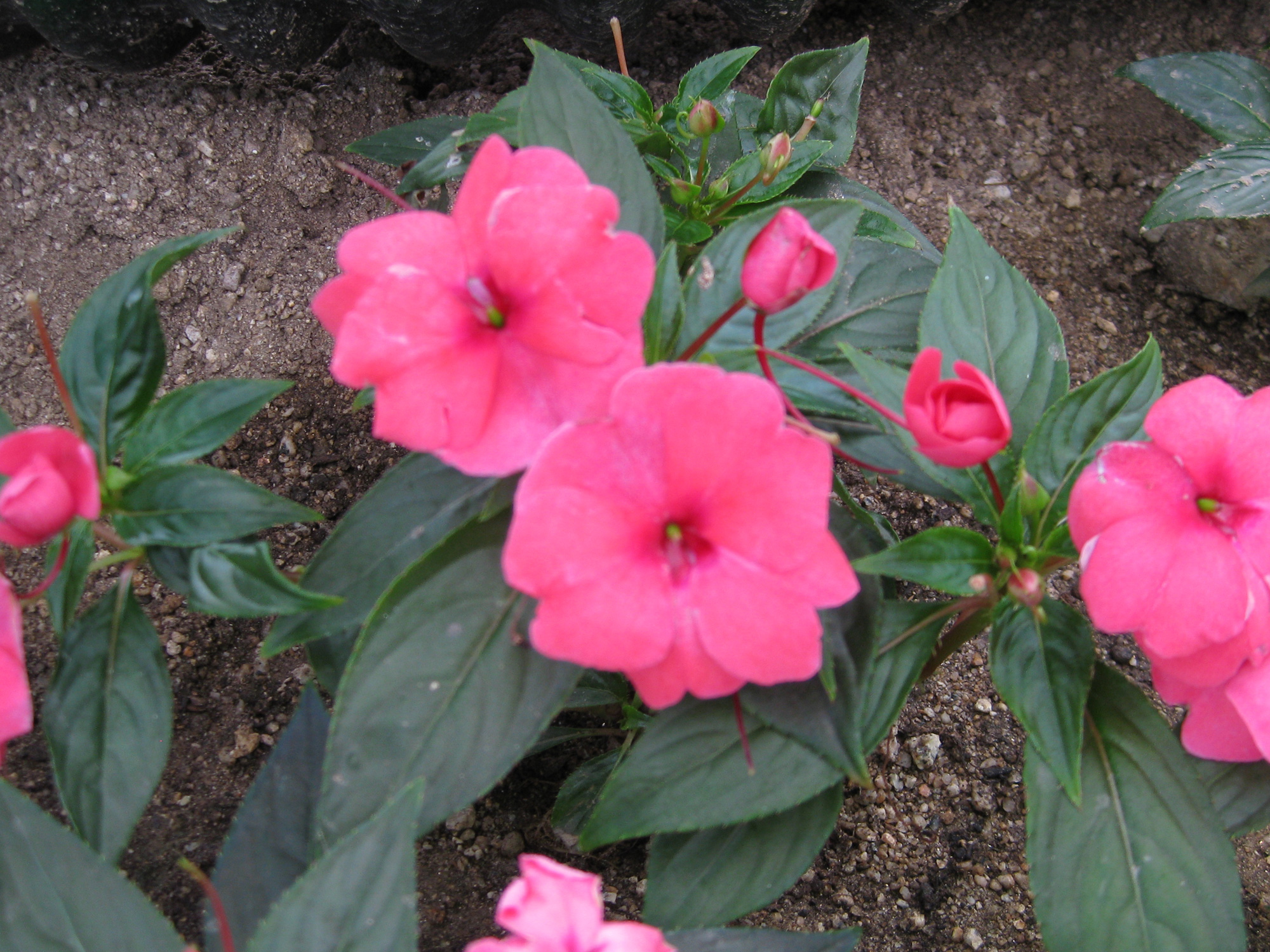 ピンク色のニューギニアインパチェンスです。花言葉は「おしゃべり」です。