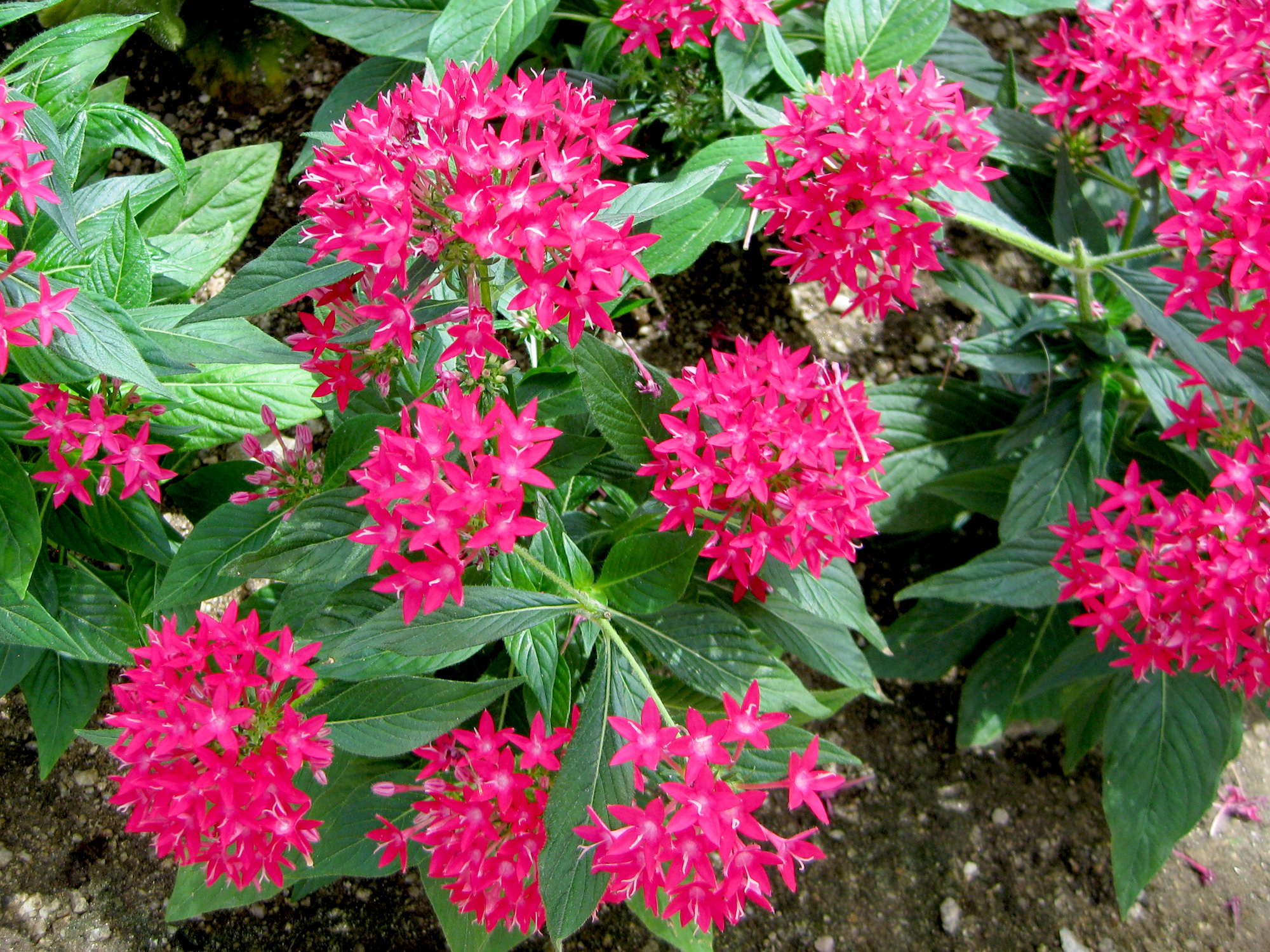 濃いピンク色のペンタスです。5月~10月頃に、星型の花を咲かせます。