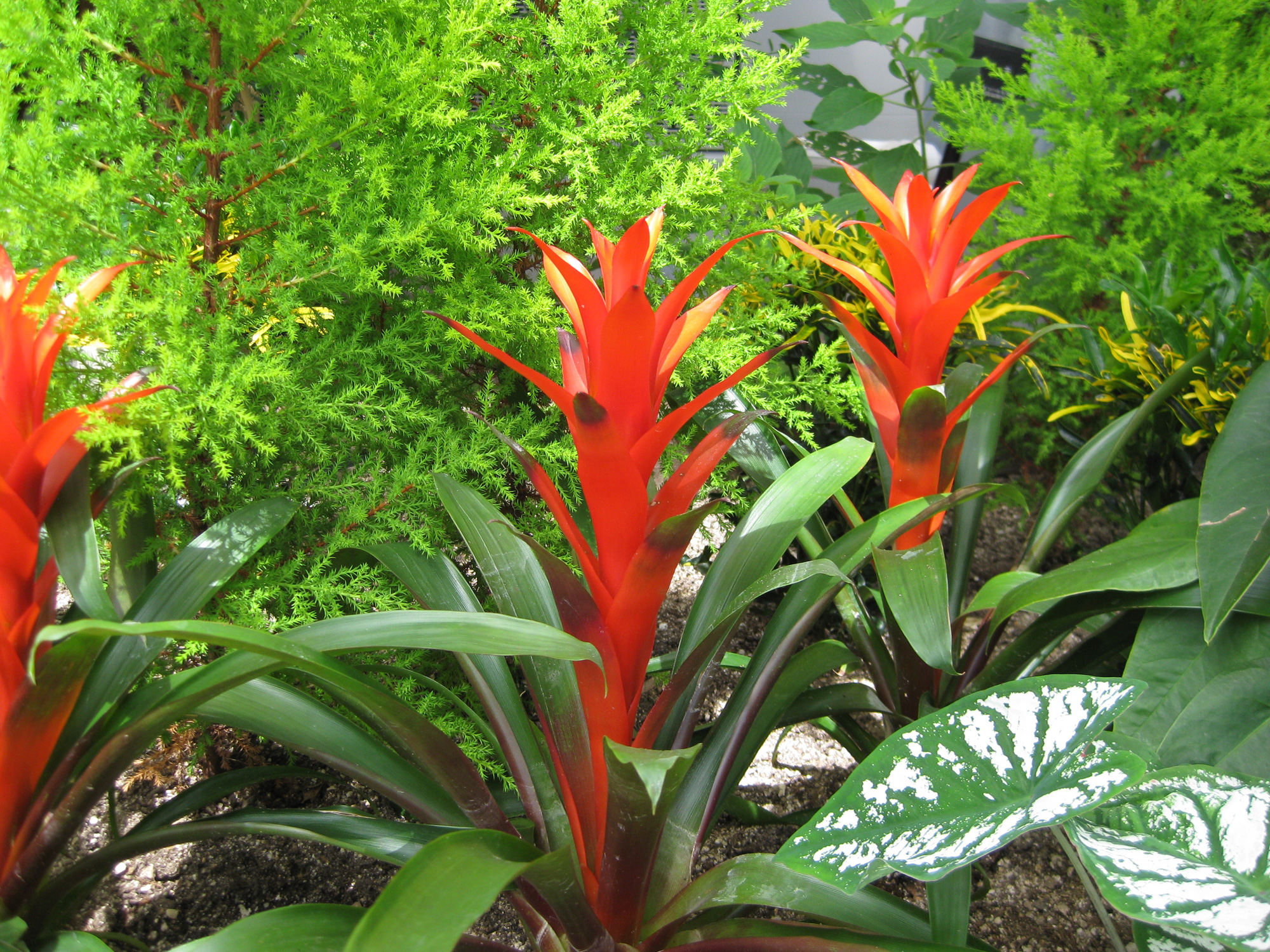 赤色のグズマニアです。花言葉は「熱情」「あなたは完璧」「理想の夫婦」です。