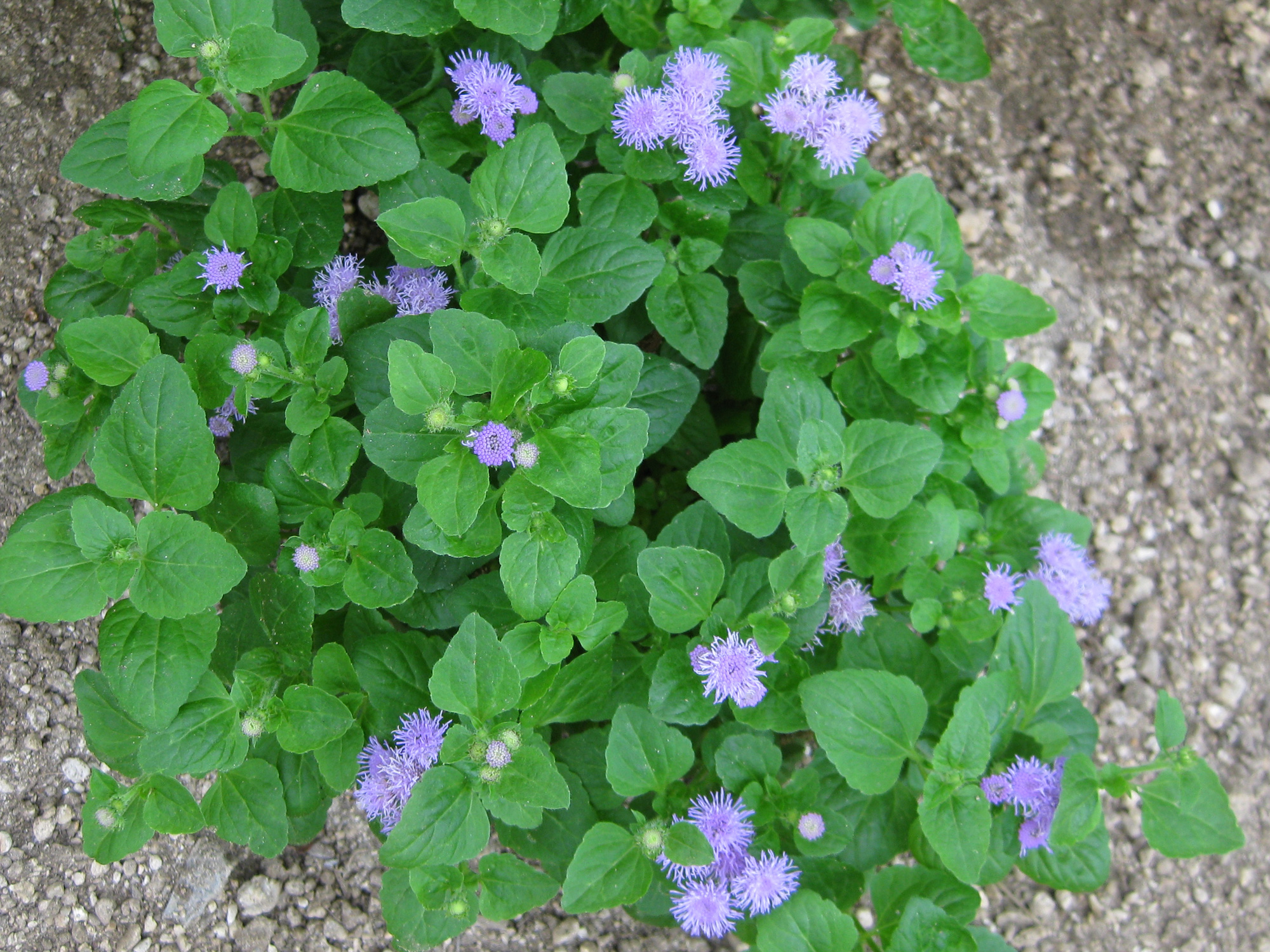 紫色のアゲラタム(カッコウアザミ)です。花言葉は「信頼」「幸せを得る」です。キク科です。