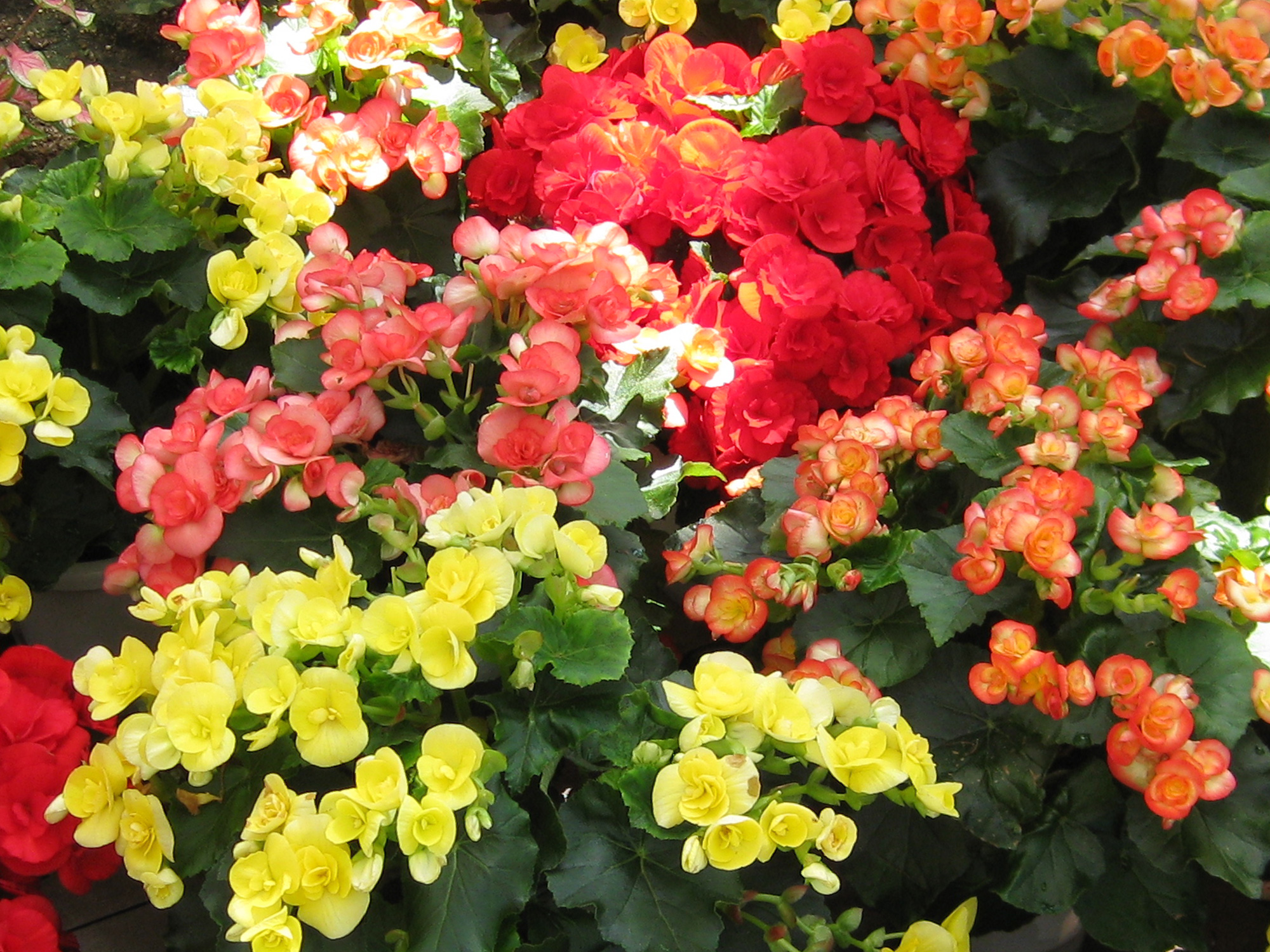 温室の花壇です。赤色・黄色・橙色・桃色とカラフルです。色調は、少し彩度を上げました。