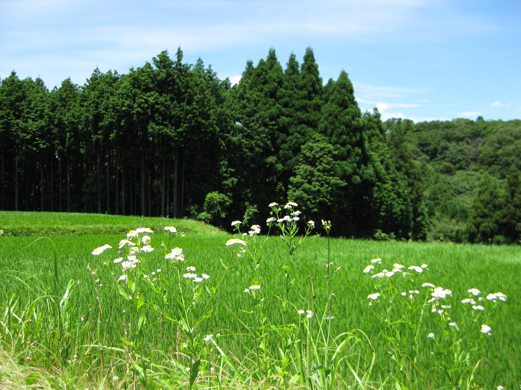こちらも山の中にある田んぼです。田んぼの奥は森林です。更に奥にも山が続いています。