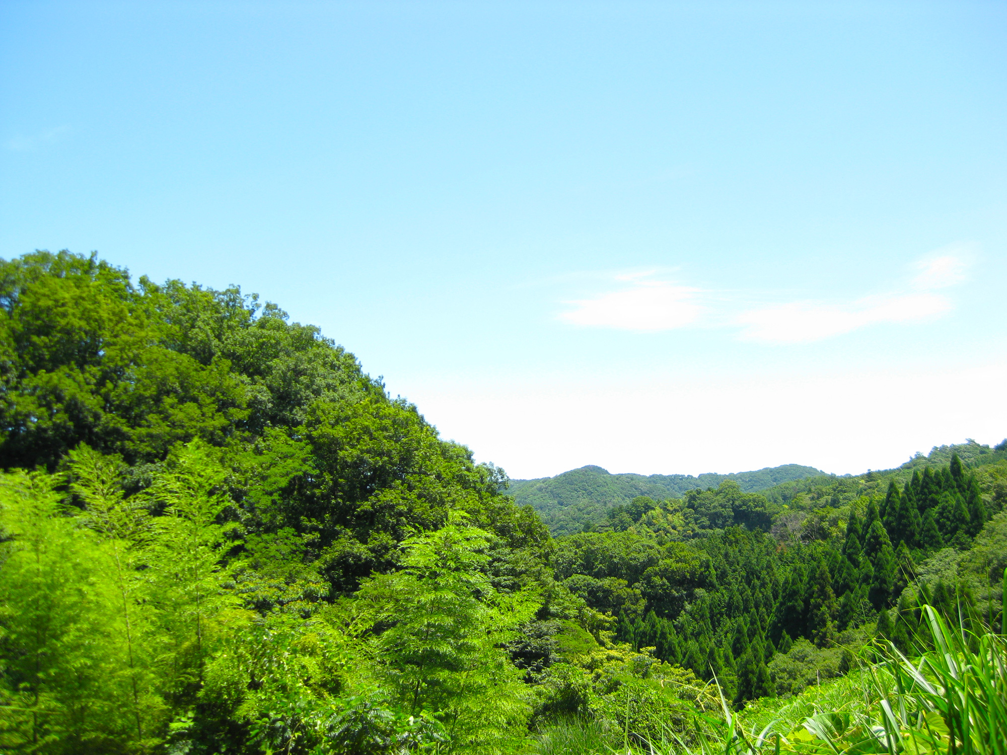 こちらも自然のままの山と青空です。山の緑と空の青が鮮やかです。