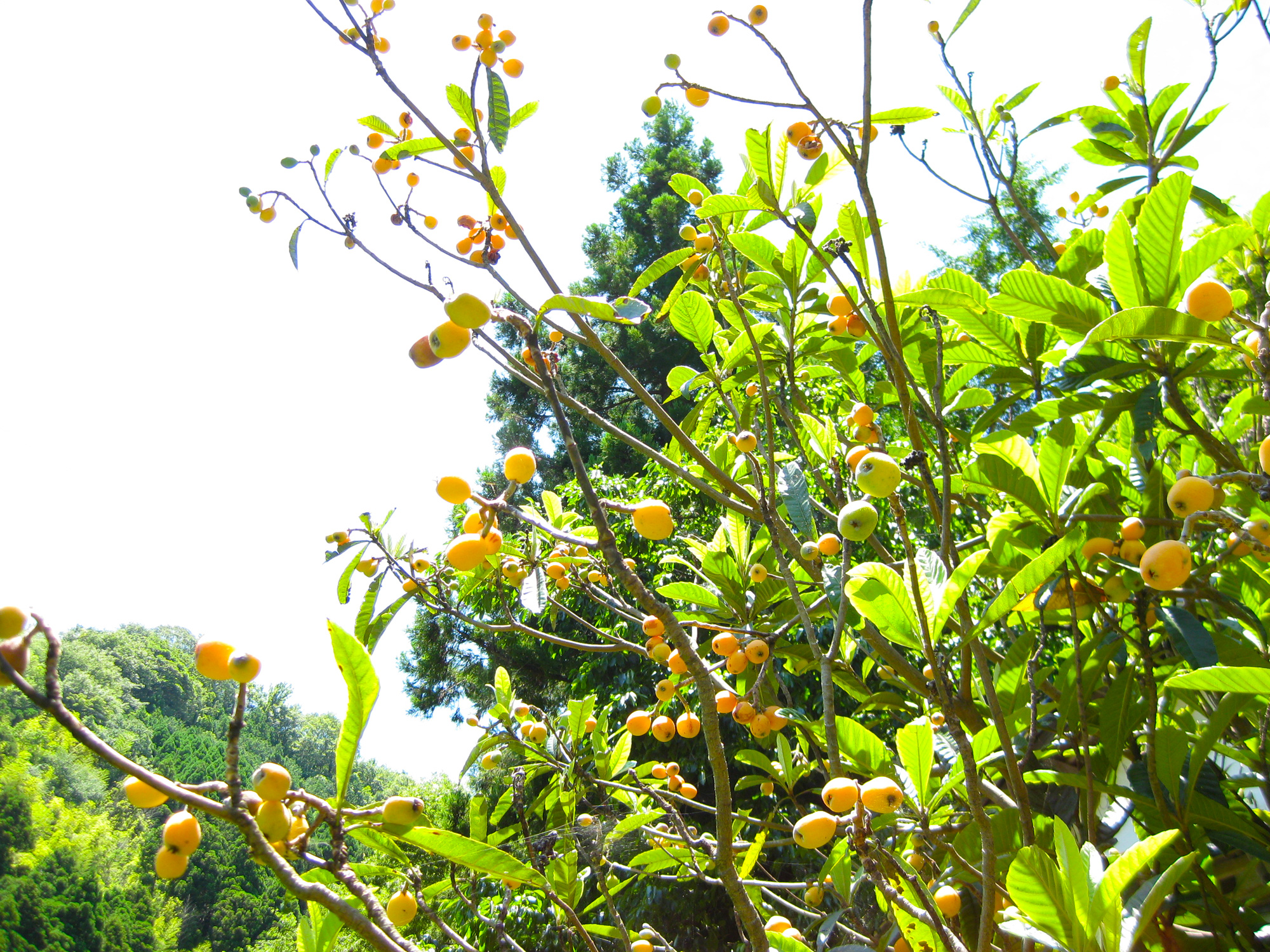山の中のびわ(枇杷)です。綺麗なオレンジ色の果実です。6月に撮影しました。