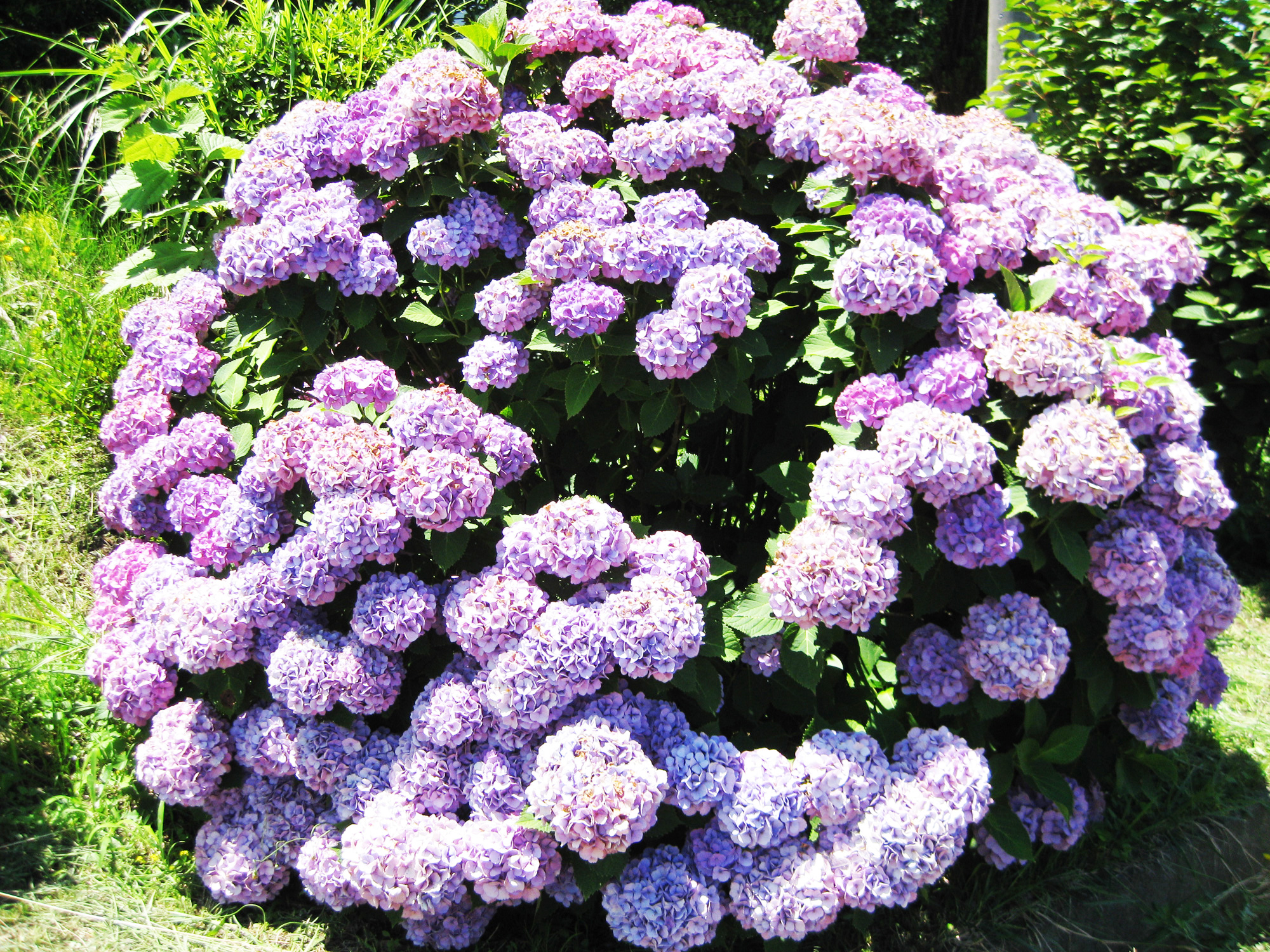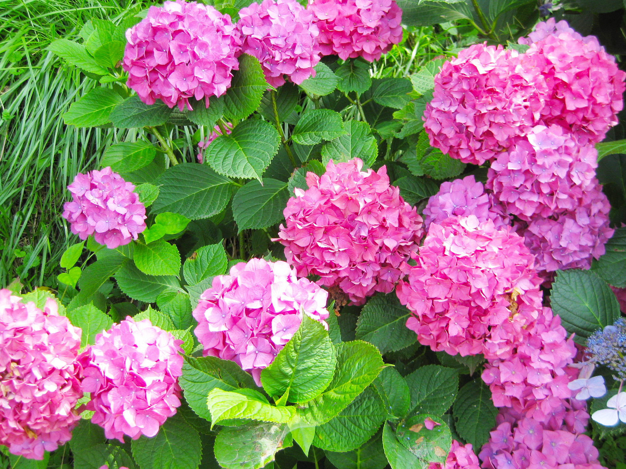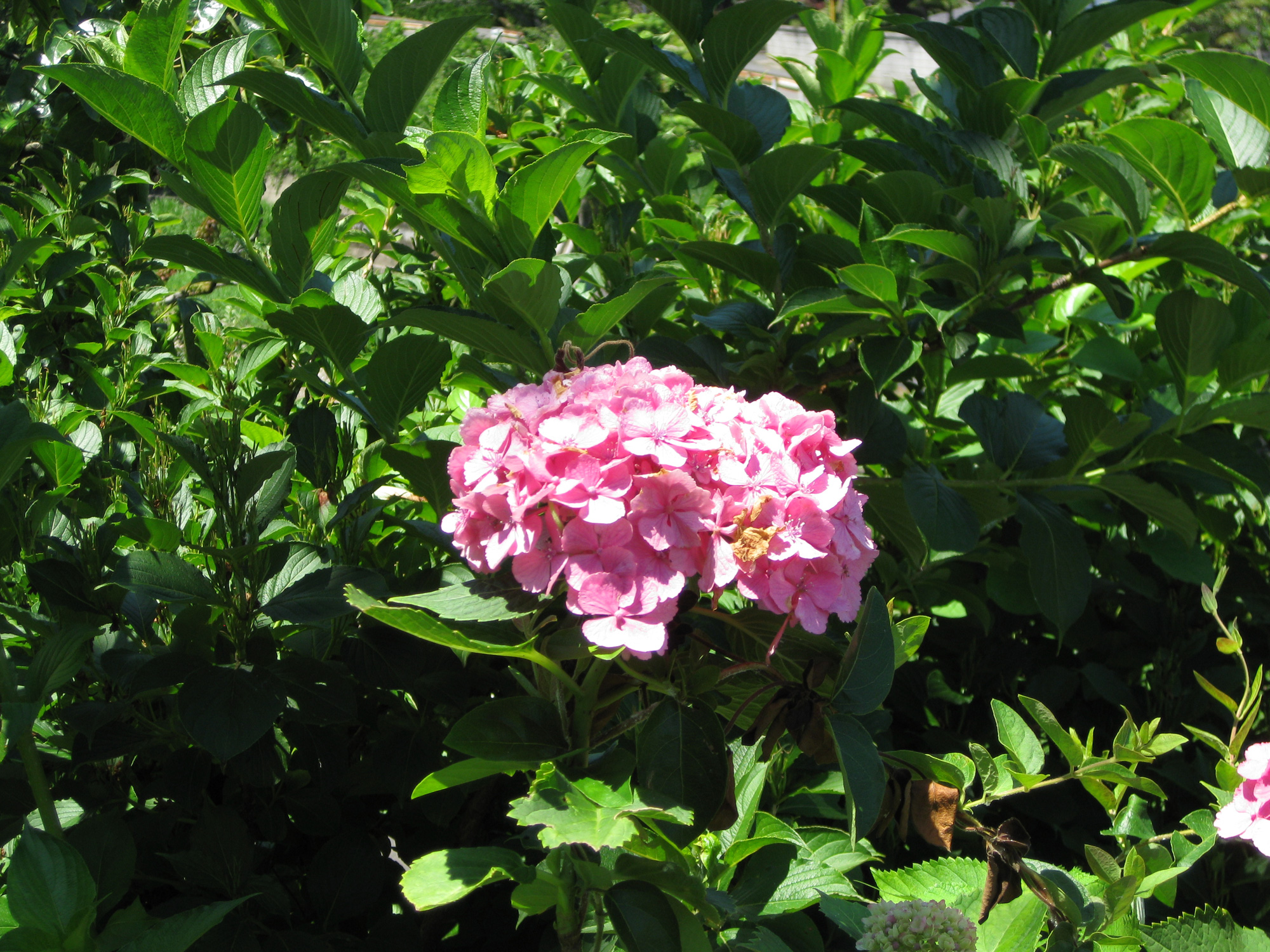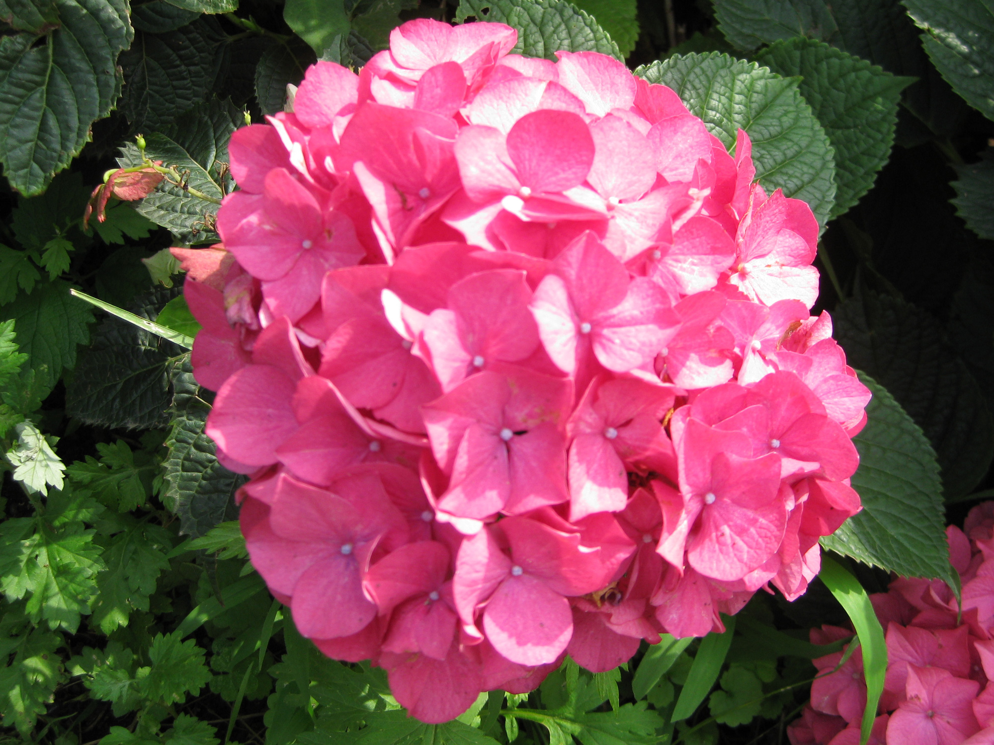ピンク色のアジサイです。とても鮮やかで濃い色です。国道の端に咲いていました。