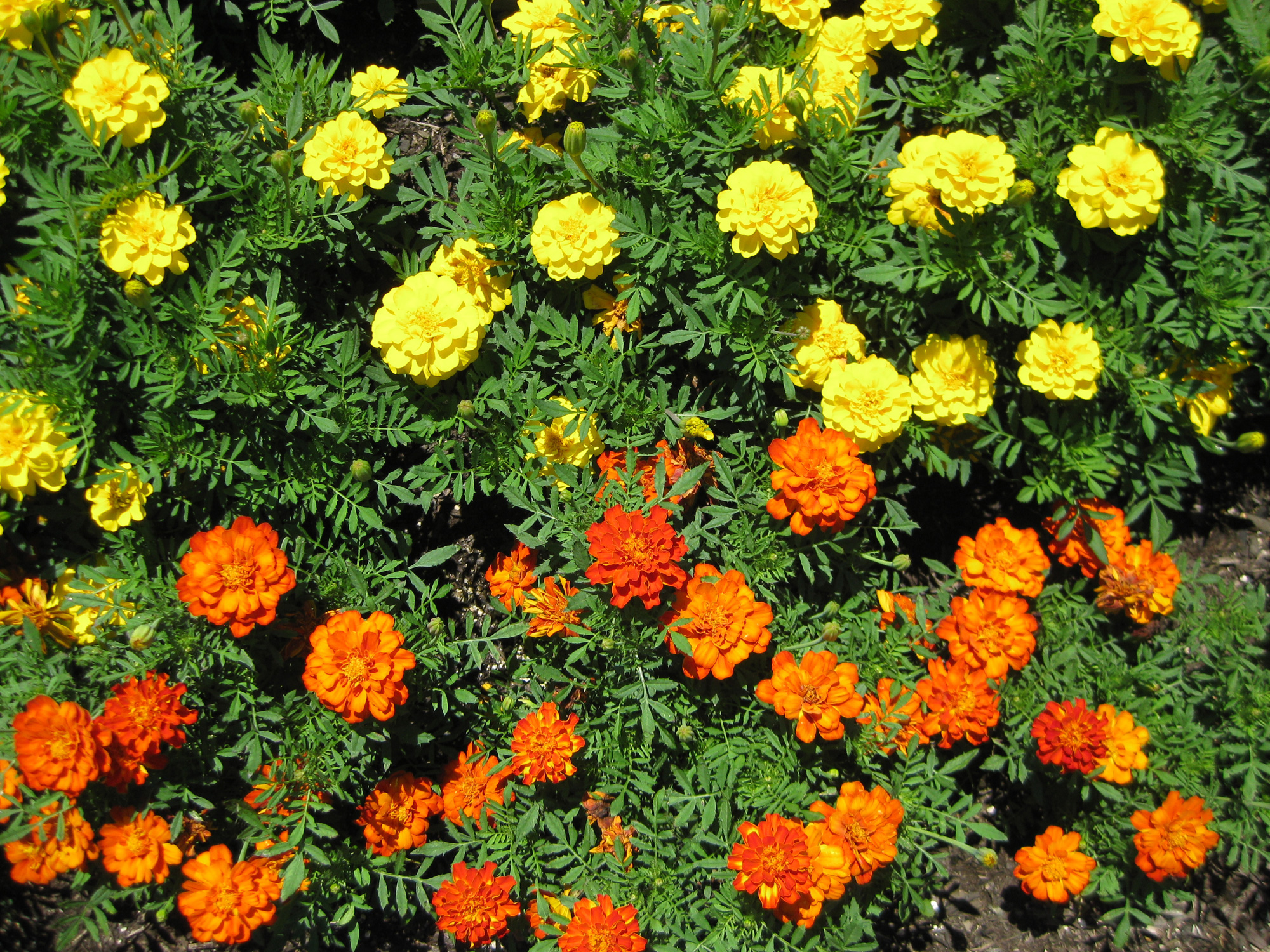 黄色と橙色に分かれたマリーゴールドです。こちらも公園に咲いていました。