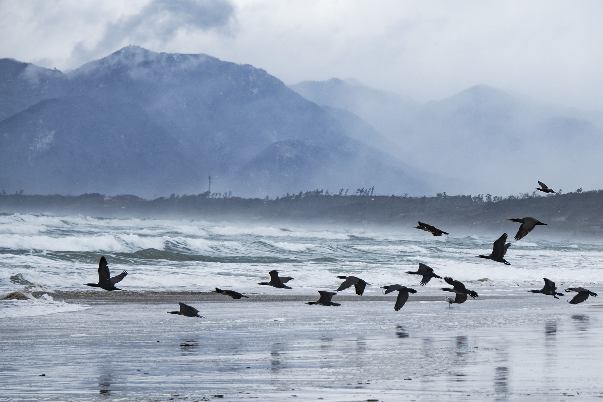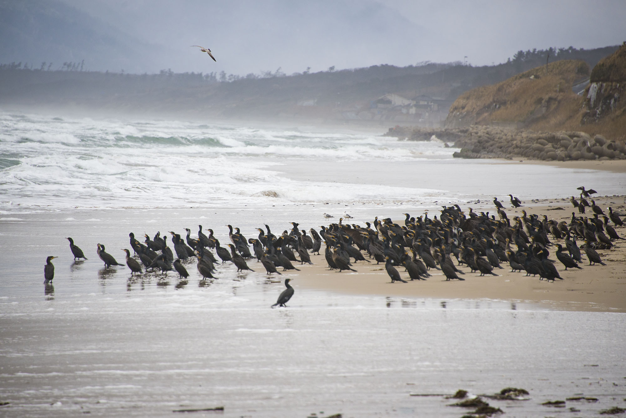 海岸を飛ぶ鳥たちを撮影しました。フリー写真素材281です。