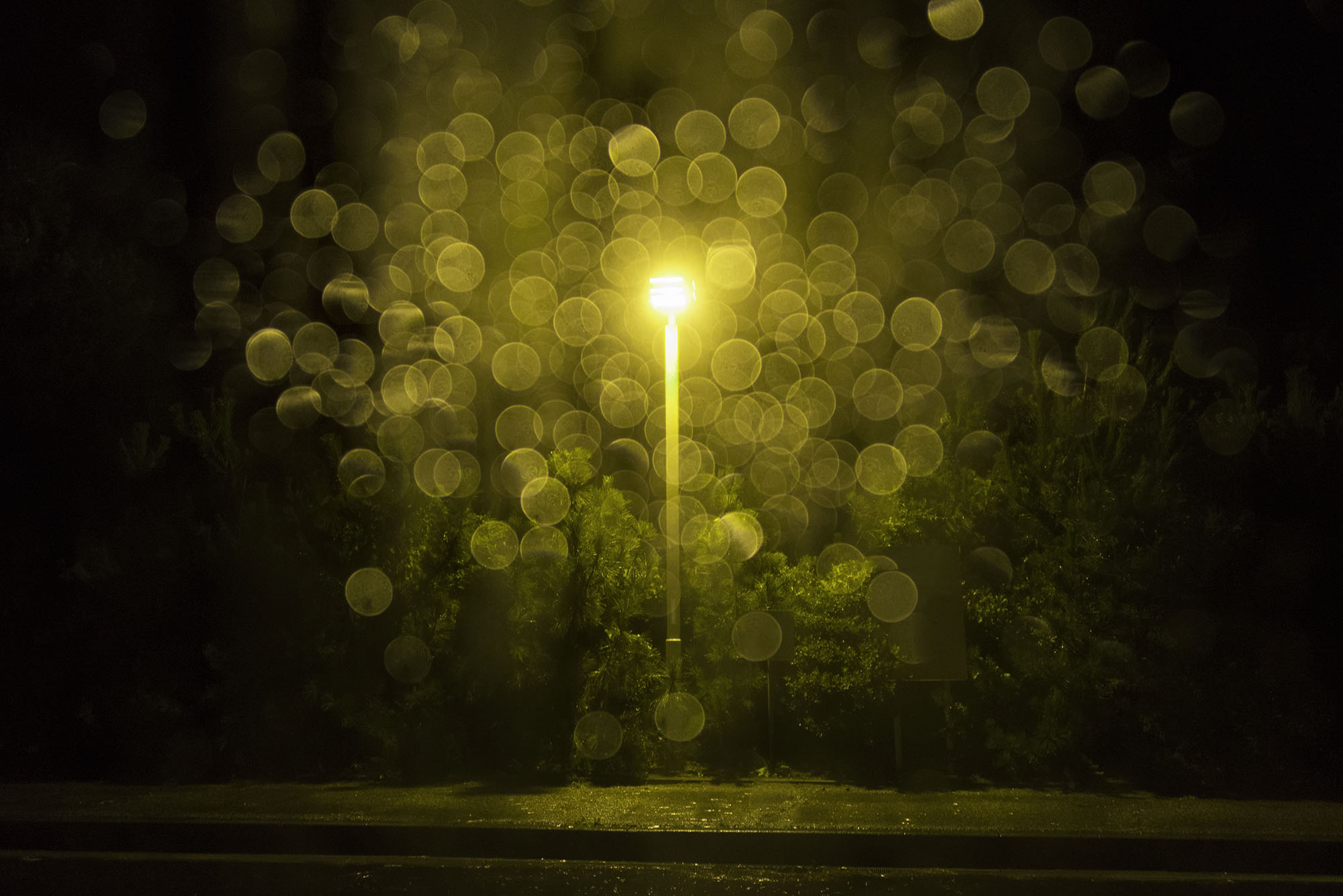 夜道を照らす街灯(黄色)を撮影しました。フリー写真素材298です。