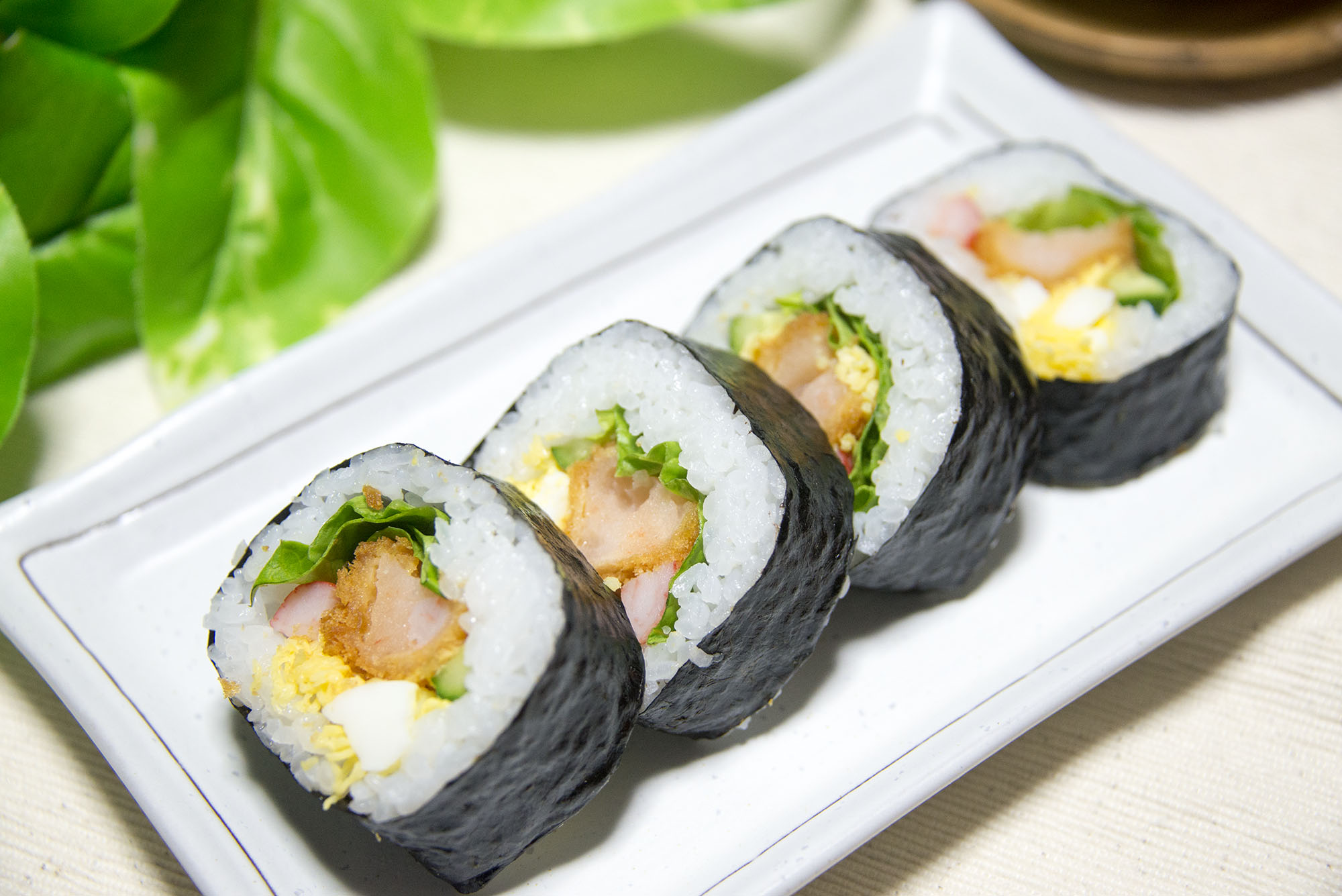 太巻きと海老カツ巻きのフリー写真素材です。