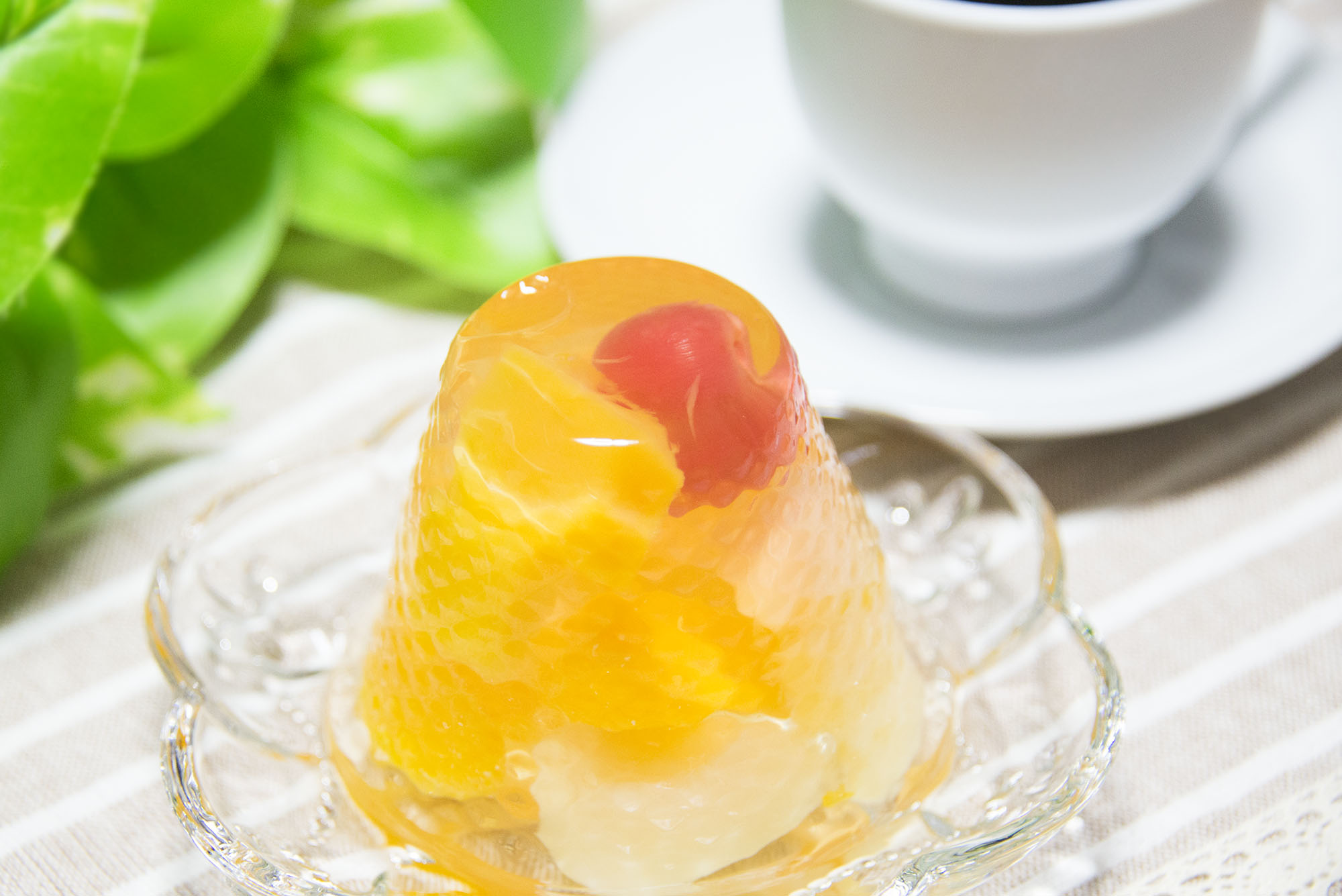 ミックスフルーツゼリーとメロンゼリーのフリー写真素材です。