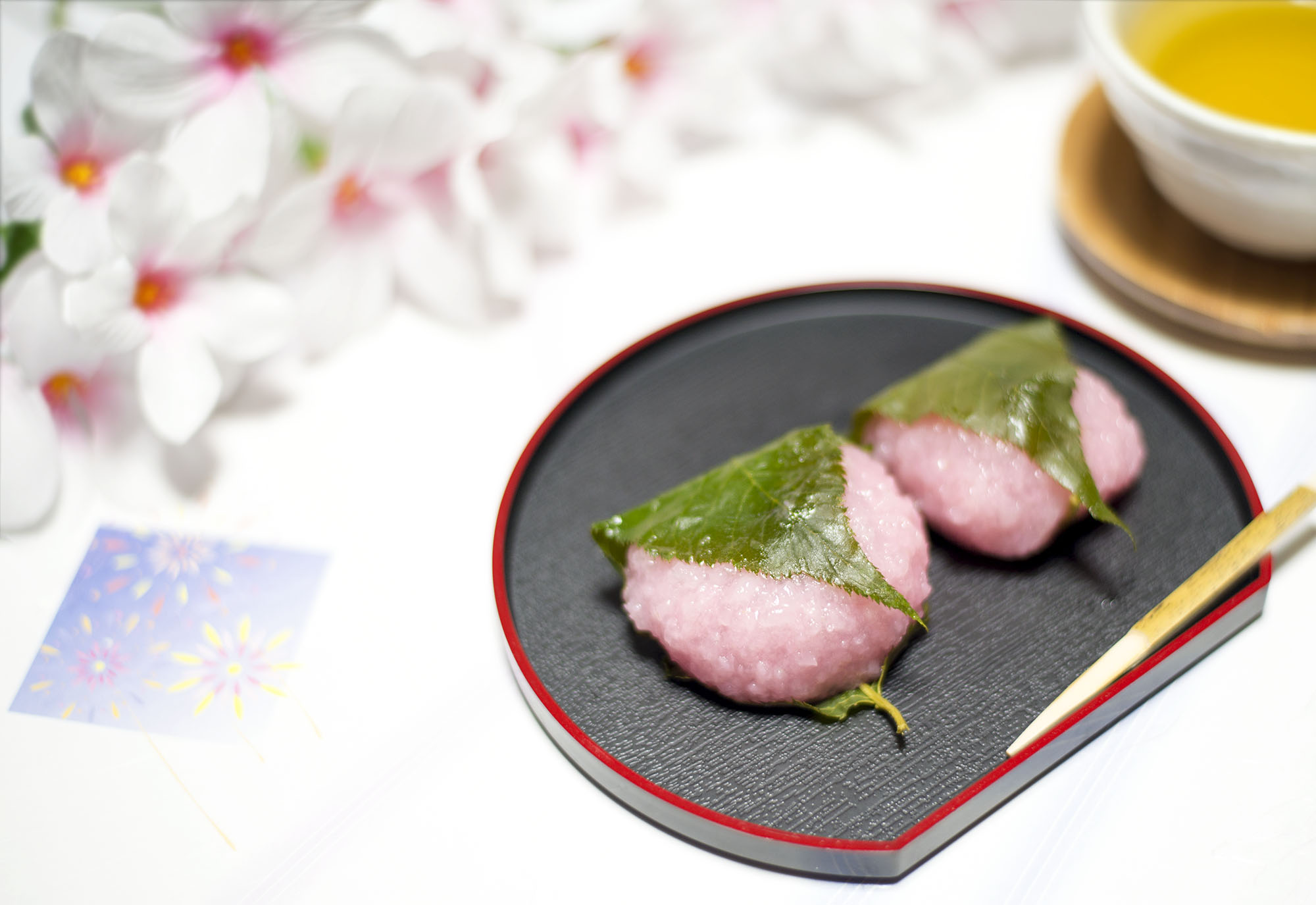 和菓子(豆大福と桜餅)のフリー写真素材2です。